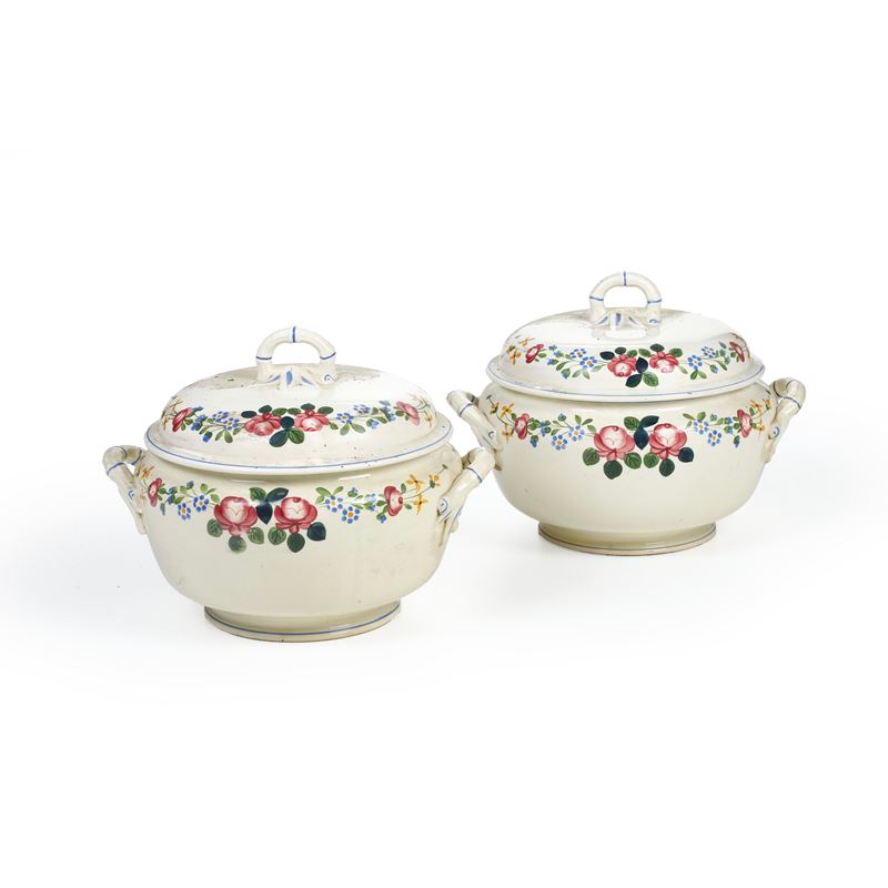 Coppia di zuppiere. Francia, Manifattura di Sarreguemines, prima metà del XX secolo.