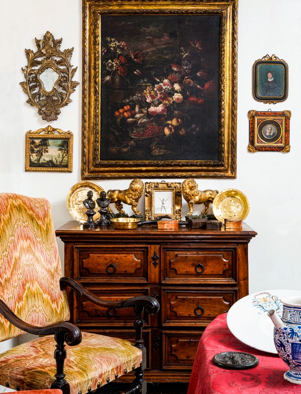 Legno intagliato ed ebanizzato con placca e vasi in argento e altri materiali