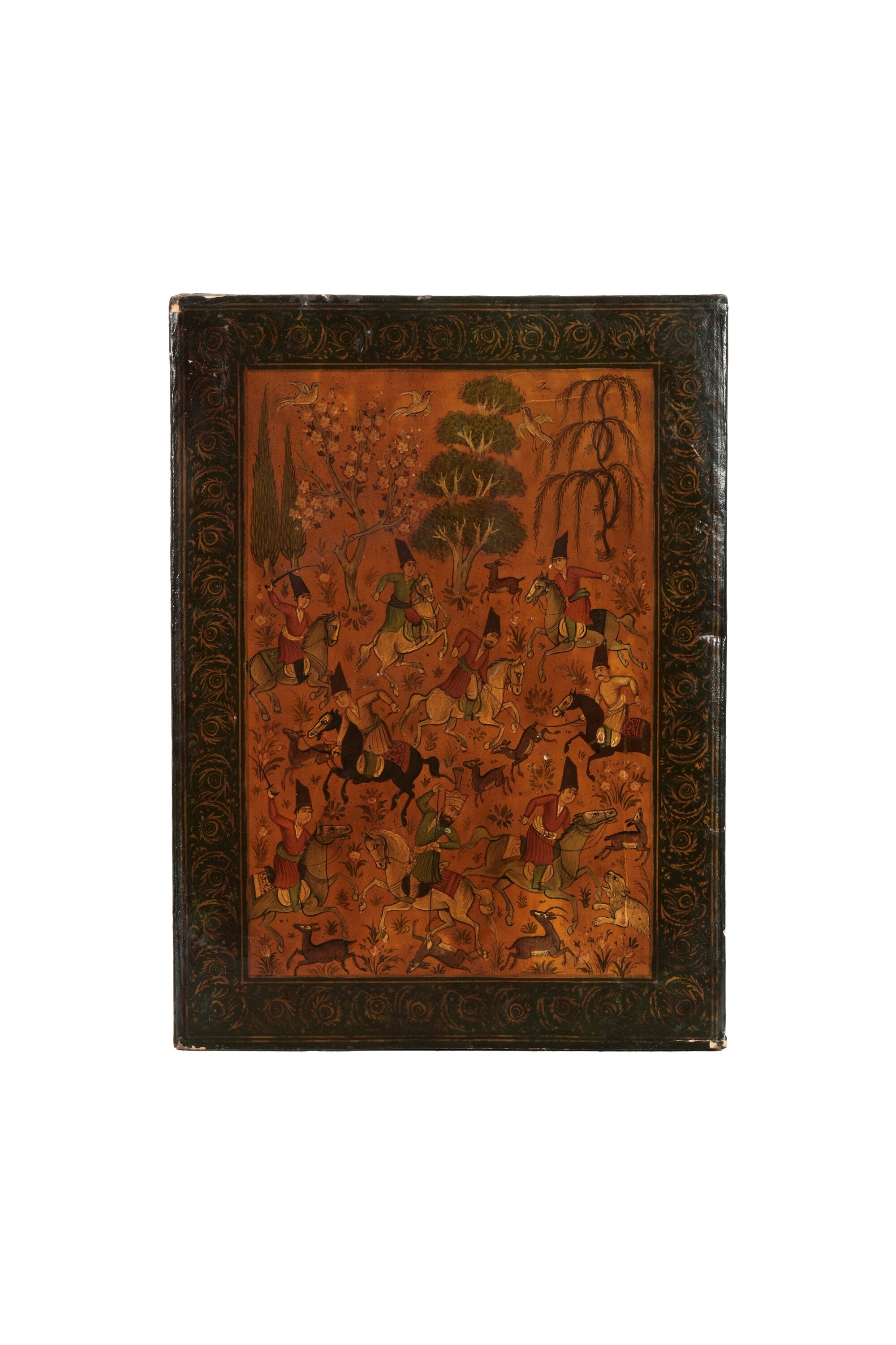 Dipinto su legno islamico raffigurante scena di corte, XIX secolo