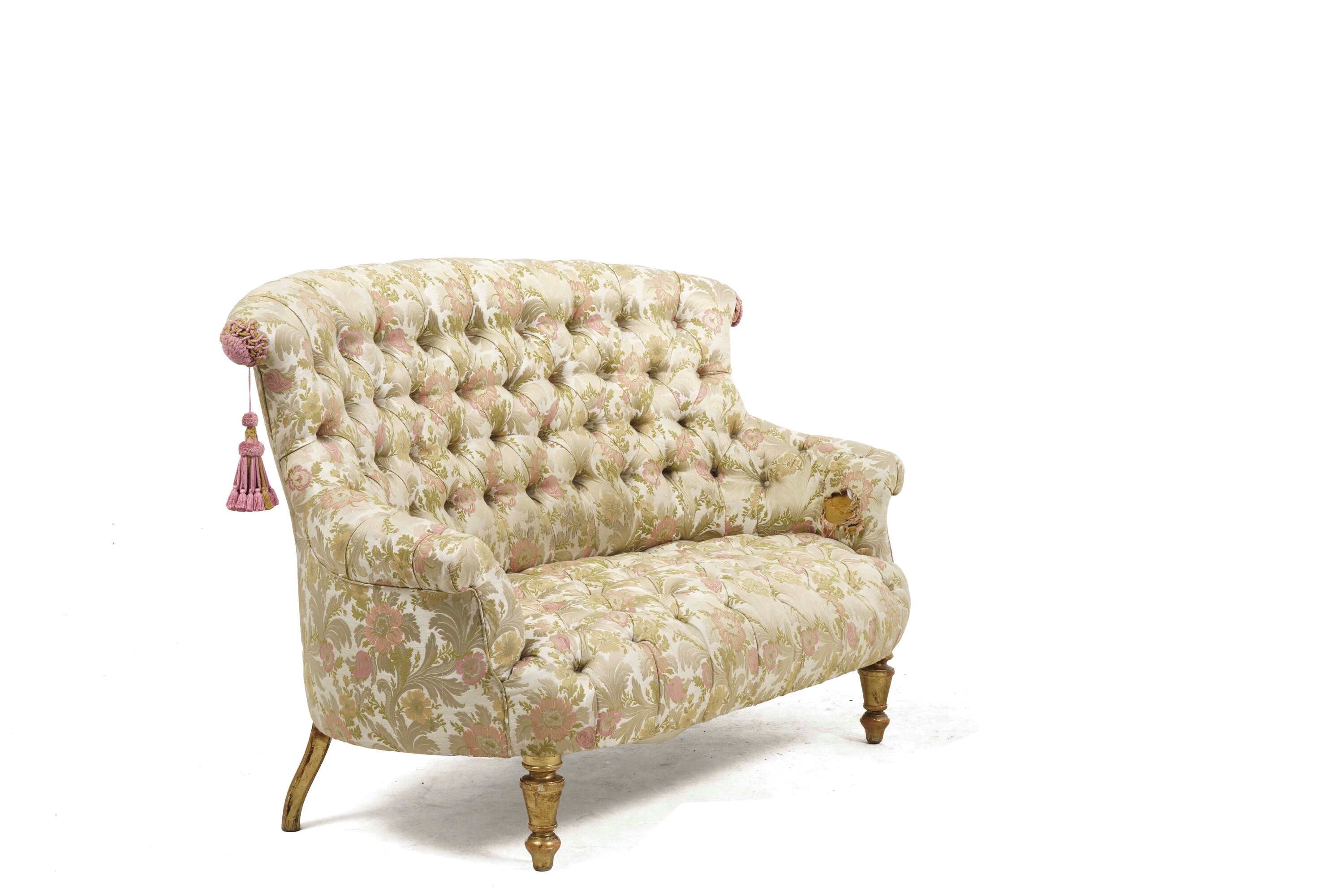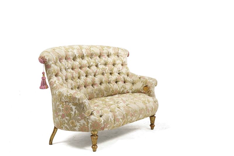 Divanetto imbottito capitonnè. XIX secolo