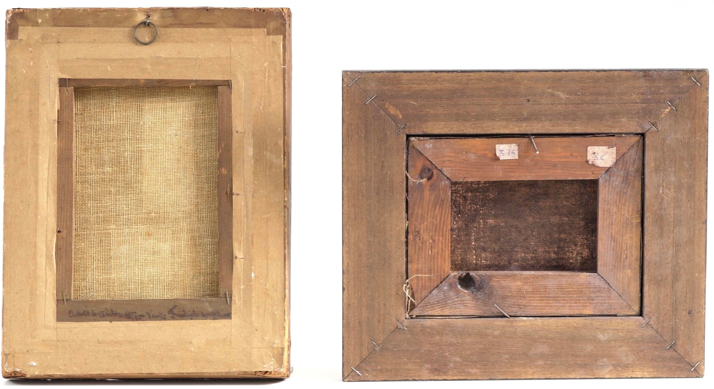 Due dipinti ad olio su tela. XIX-XX secolo Cacciatore con cane