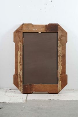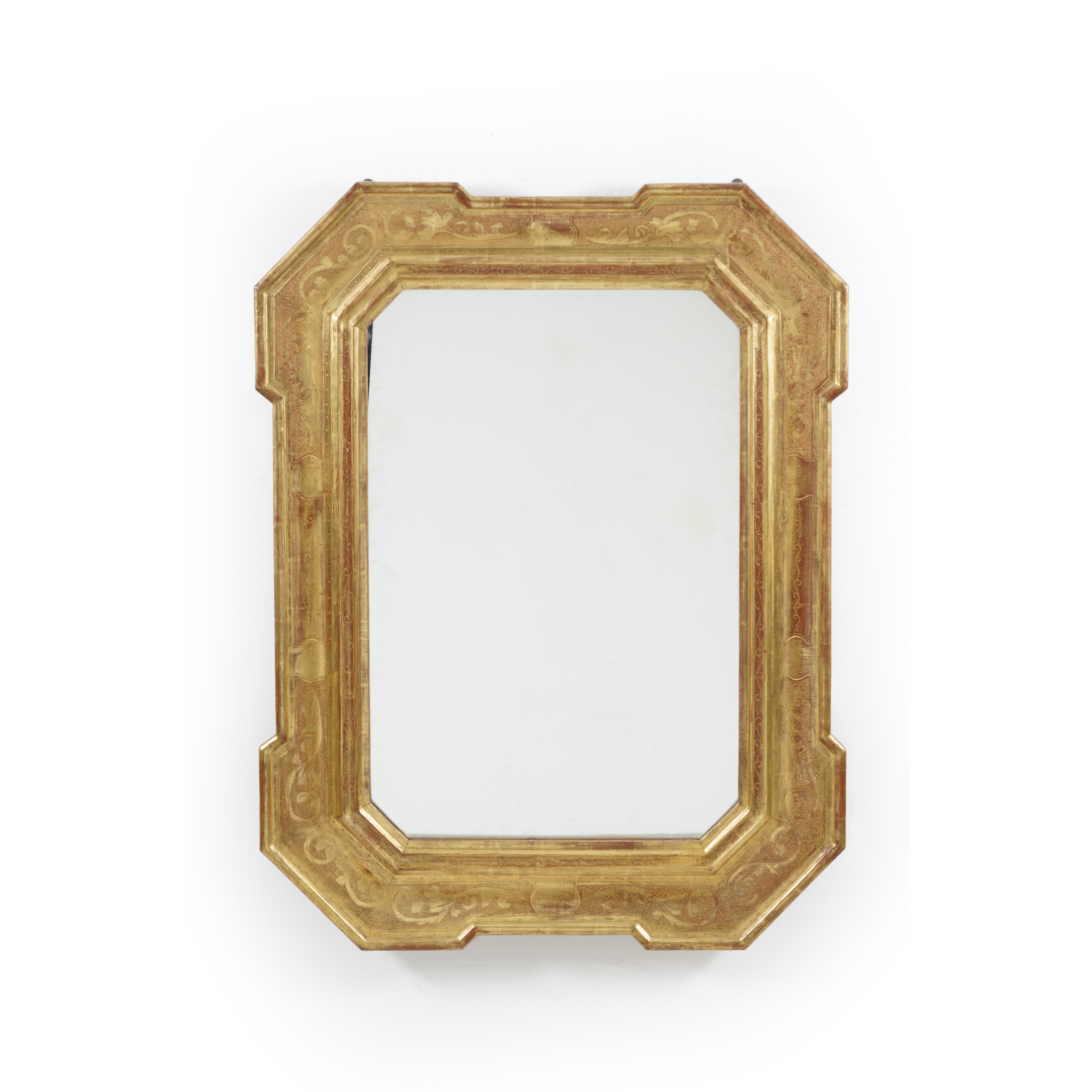 Grande specchiera con cornice a vassoio in legno inciso e dorato