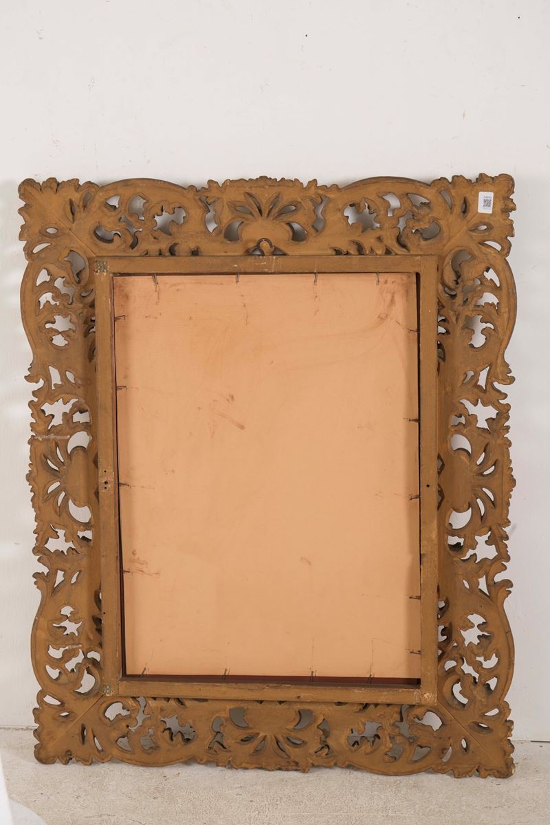 cornice in legno intagliato, traforato e dorato