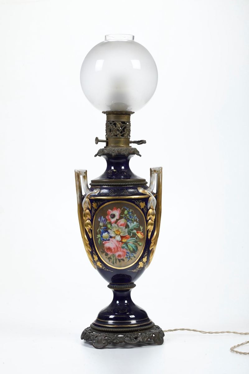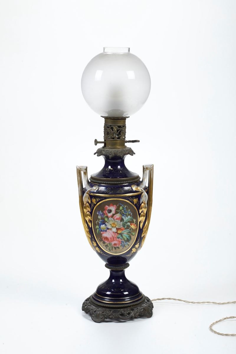 Lampada a petrolio elettrificata. Francia (?), fine del XIX secolo.