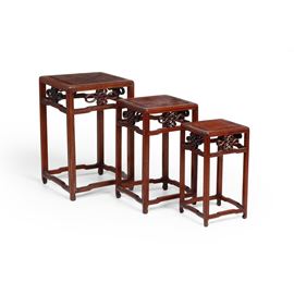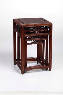Lotto composto da tre tavolini in legno intagliato, Cina, Dinastia Qing, XIX secolo