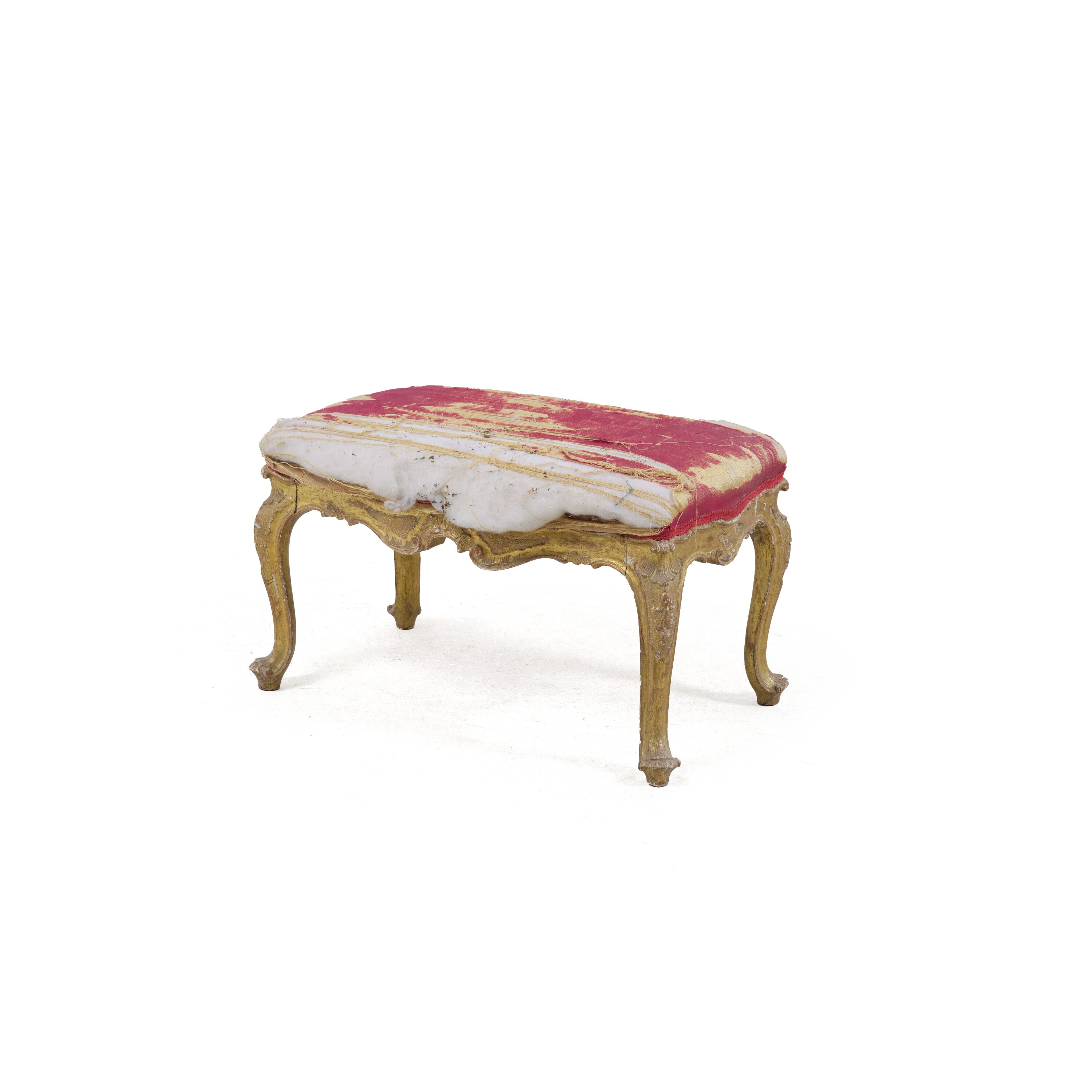Gambe mosse con decori rocaille a pellacce, seduta imbottita