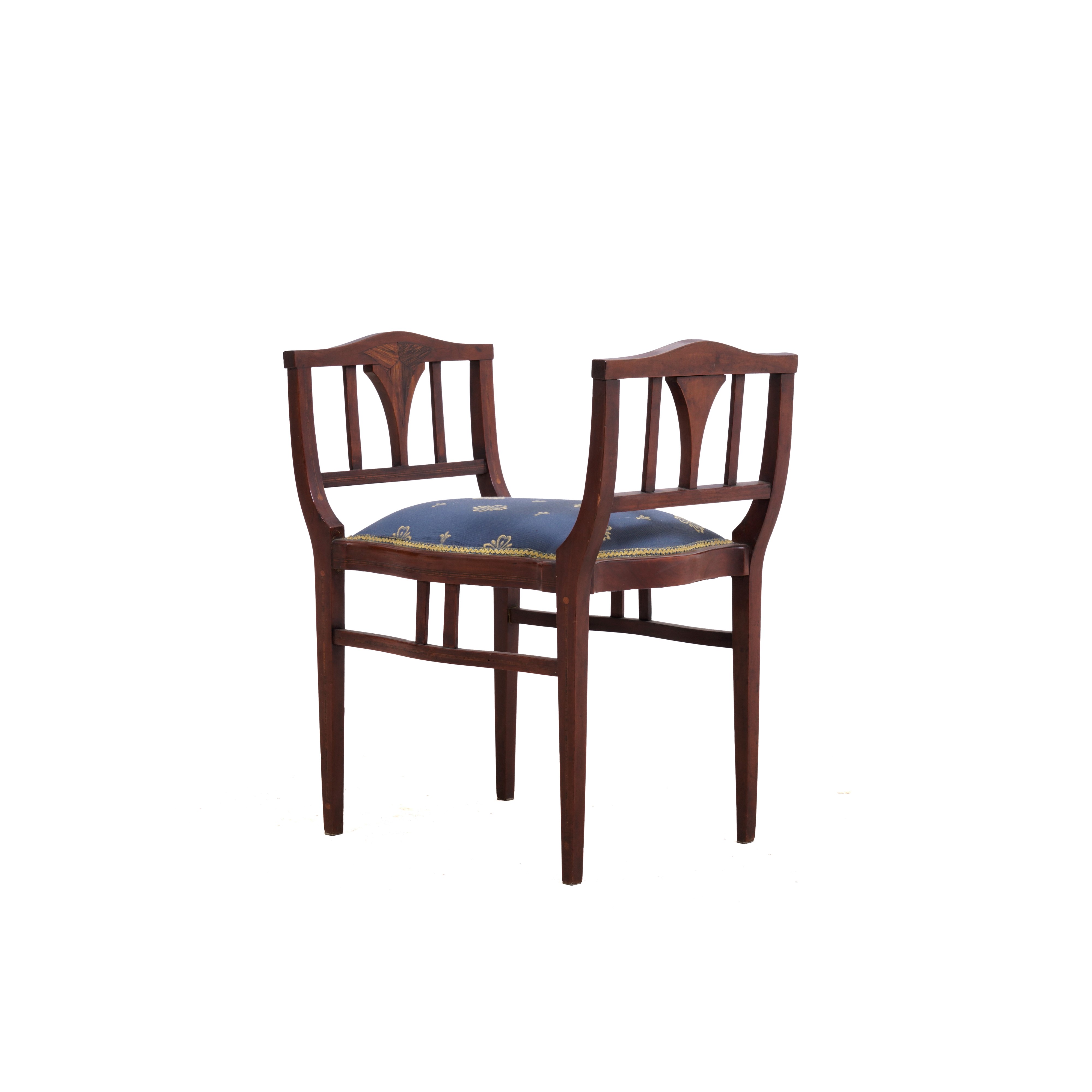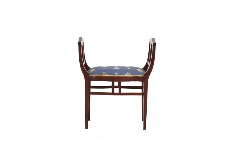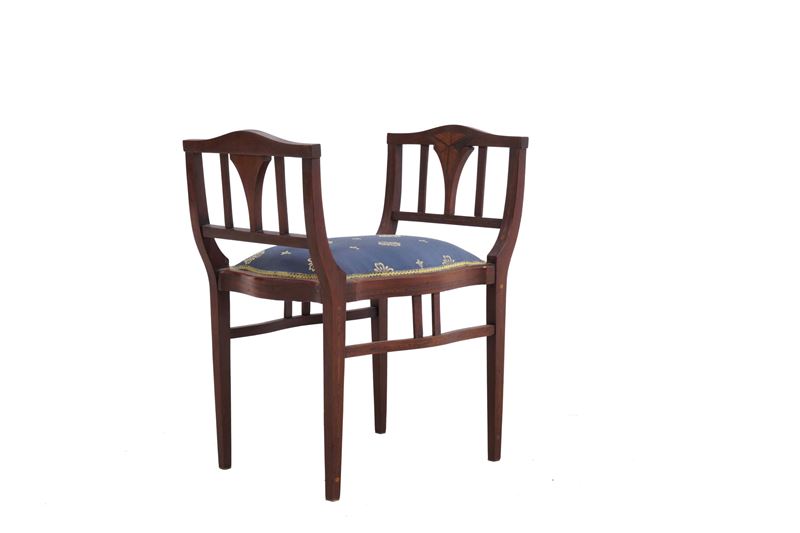 Sponde laterali traforate, seduta imbottita, gambe rastremate