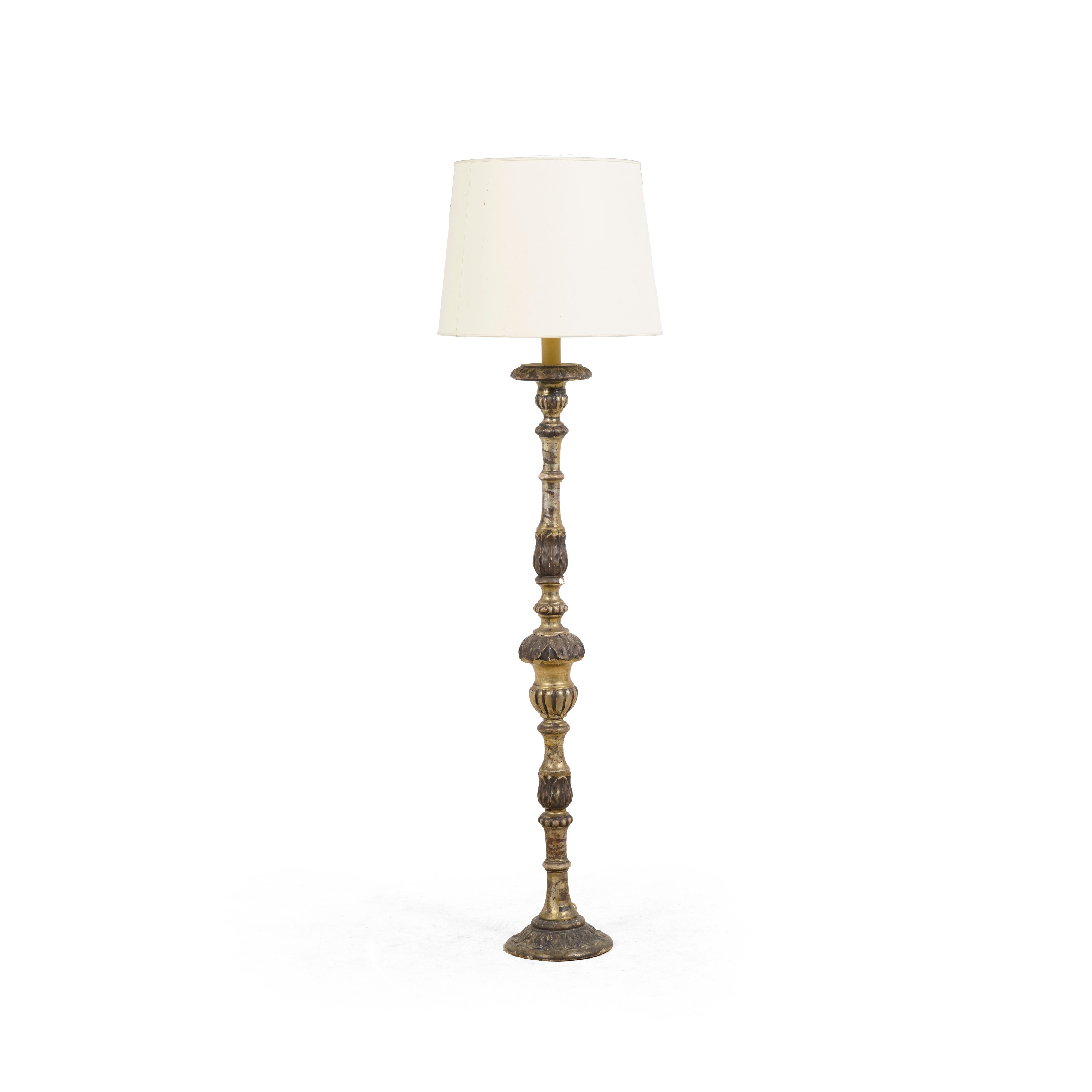Legno intagliato e dorato. Fusto tornito, elettrificata