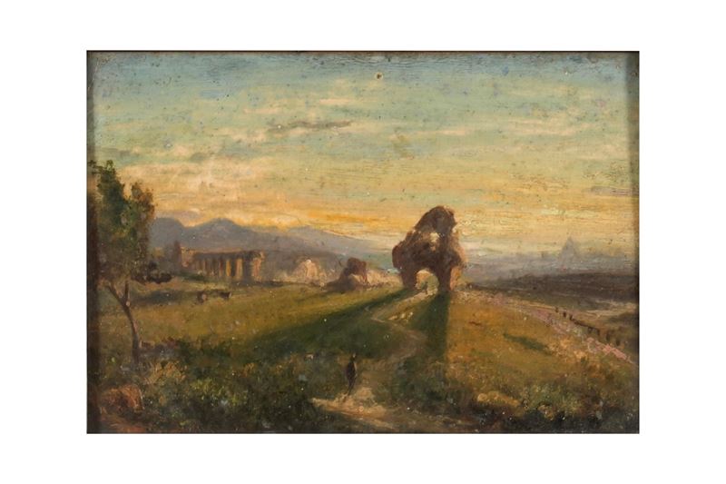 Pittore del XIX-XX secolo Paesaggio con rovine