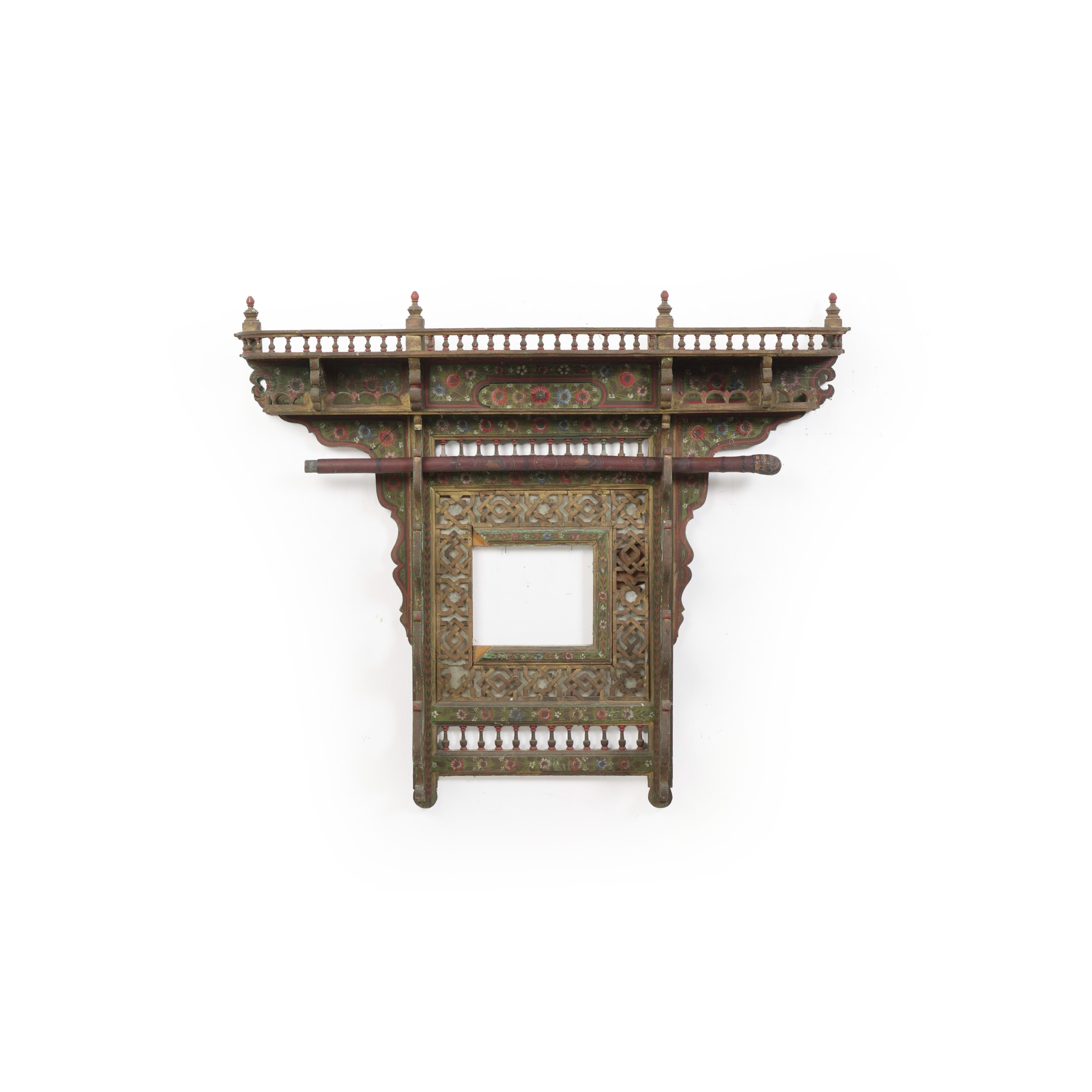Portafucili mediorientale in legno laccato con decori a motivi floreali, XIX secolo