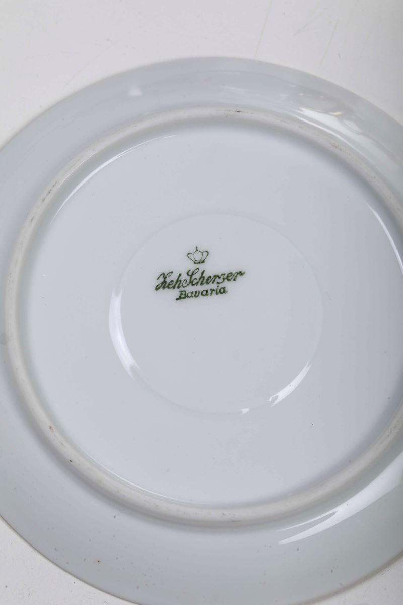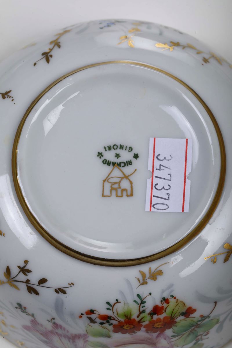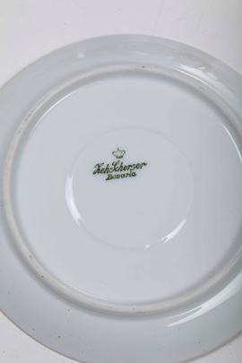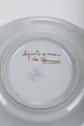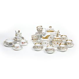 Al lotto si aggiungono: una coppia di tazze con piattino; una tazza da brodo con sottopiatto e una senapiera con cucchiaino