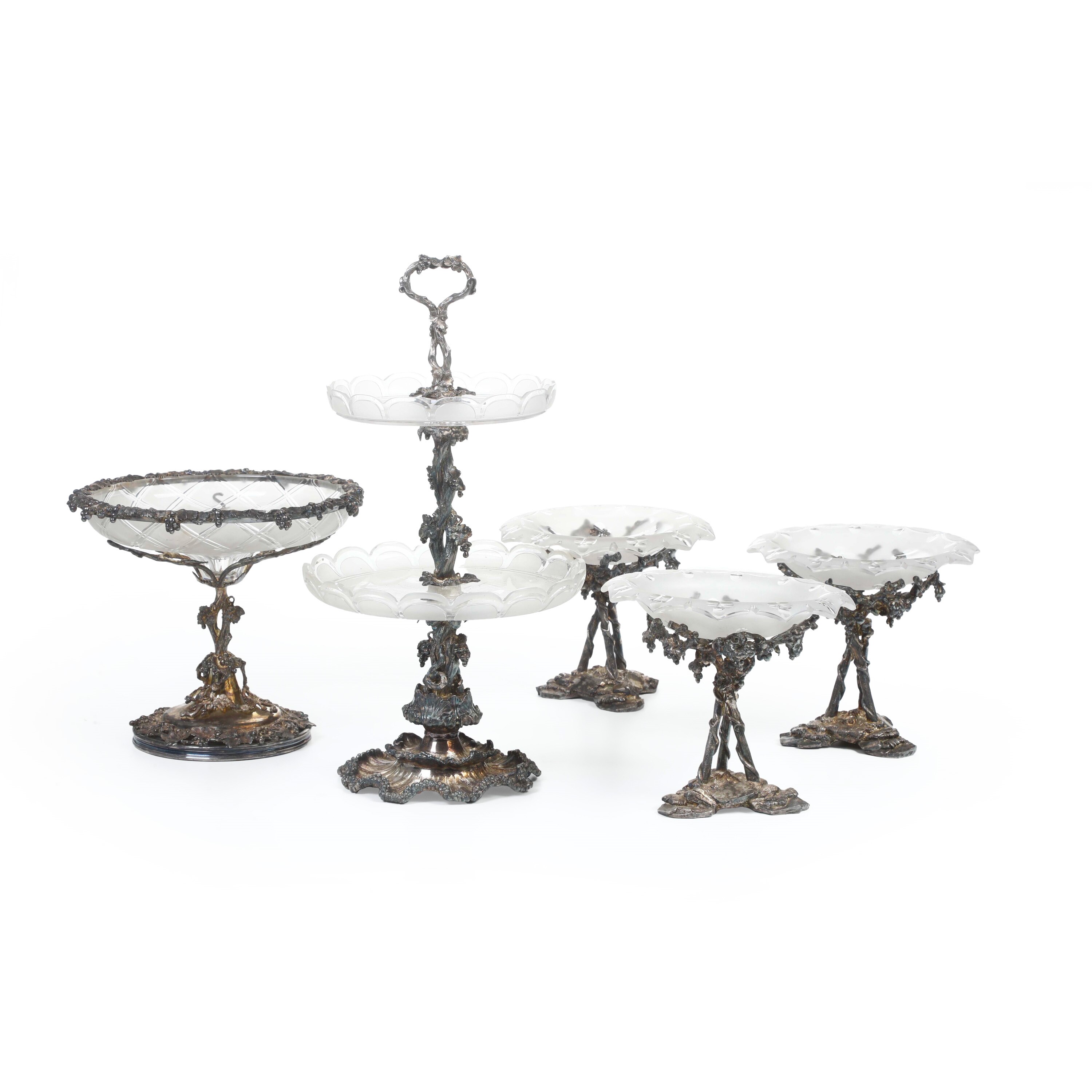 Set di alzate in metallo dorato e cristallo