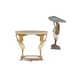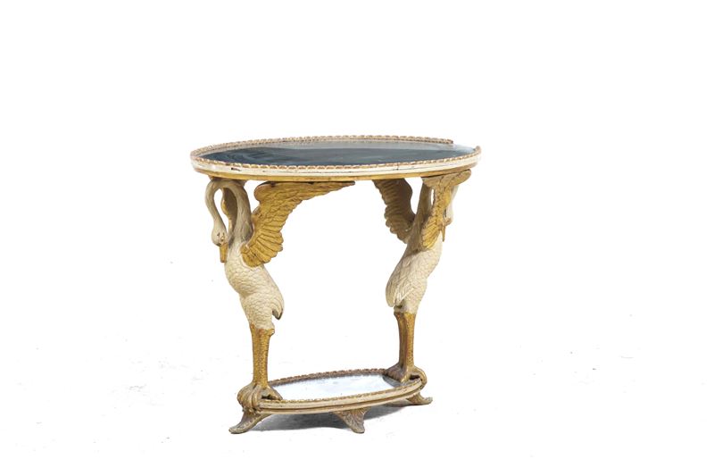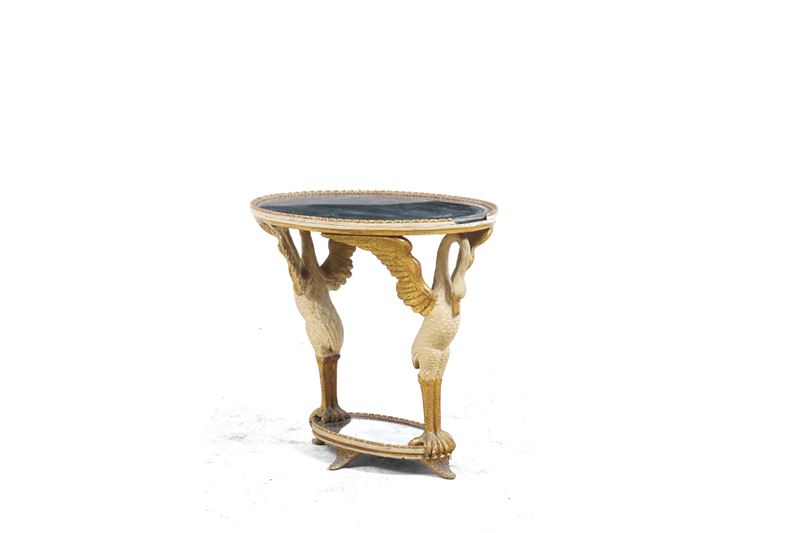 Tavolino e console in legno dipinto e dorato. XIX secolo