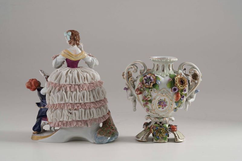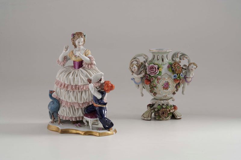 Un gruppo e un vaso. Germania, Turingia, Manifattura di Unterweissbach, XX secolo.