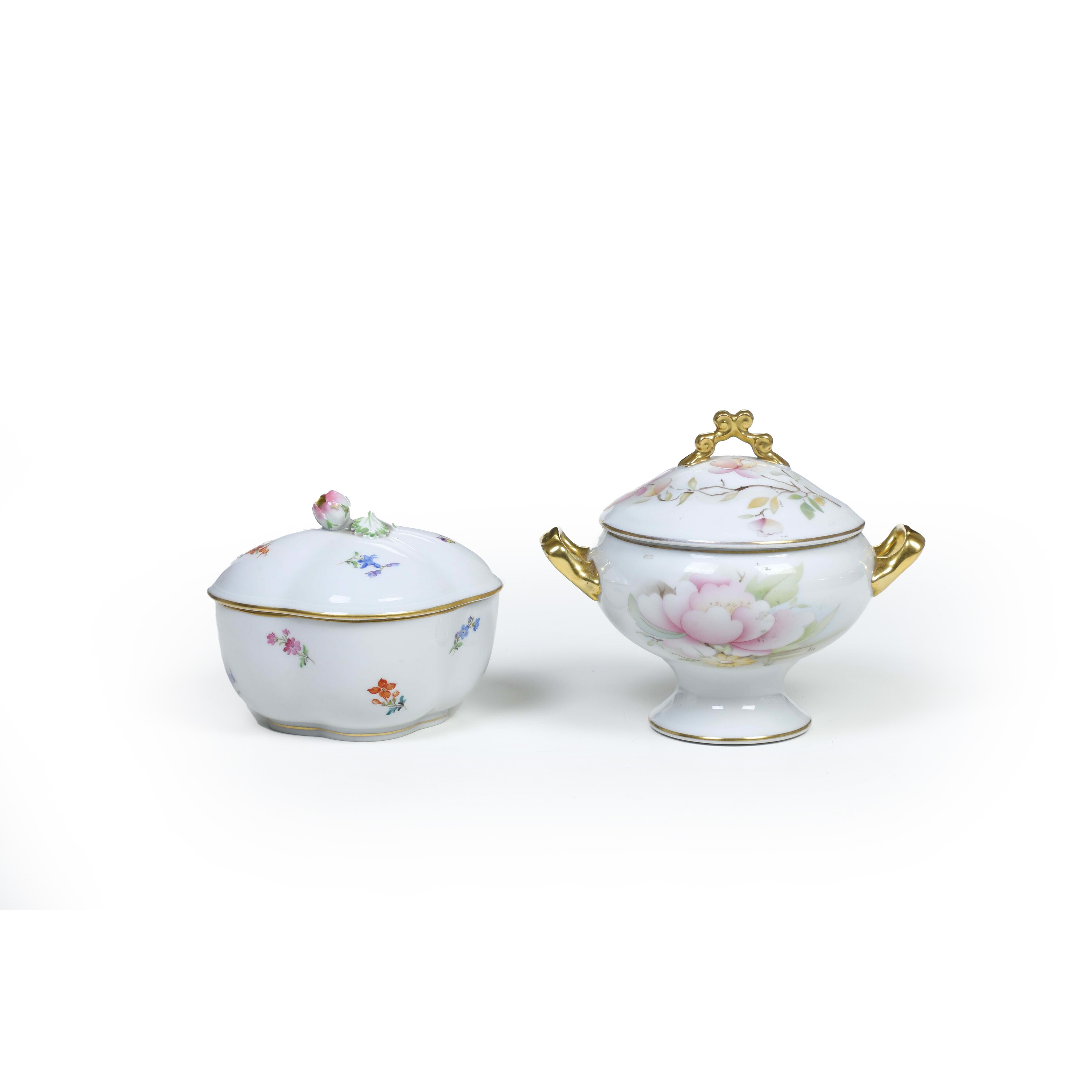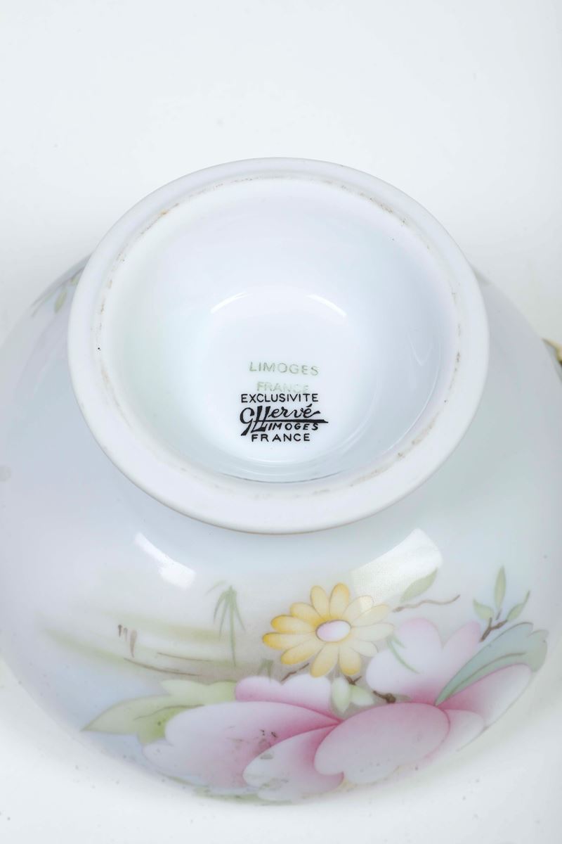 Al lotto si aggiunge una zuppierina in porcellana di Limoges del XX secolo (altezza cm 15. Conservazione: ottima)