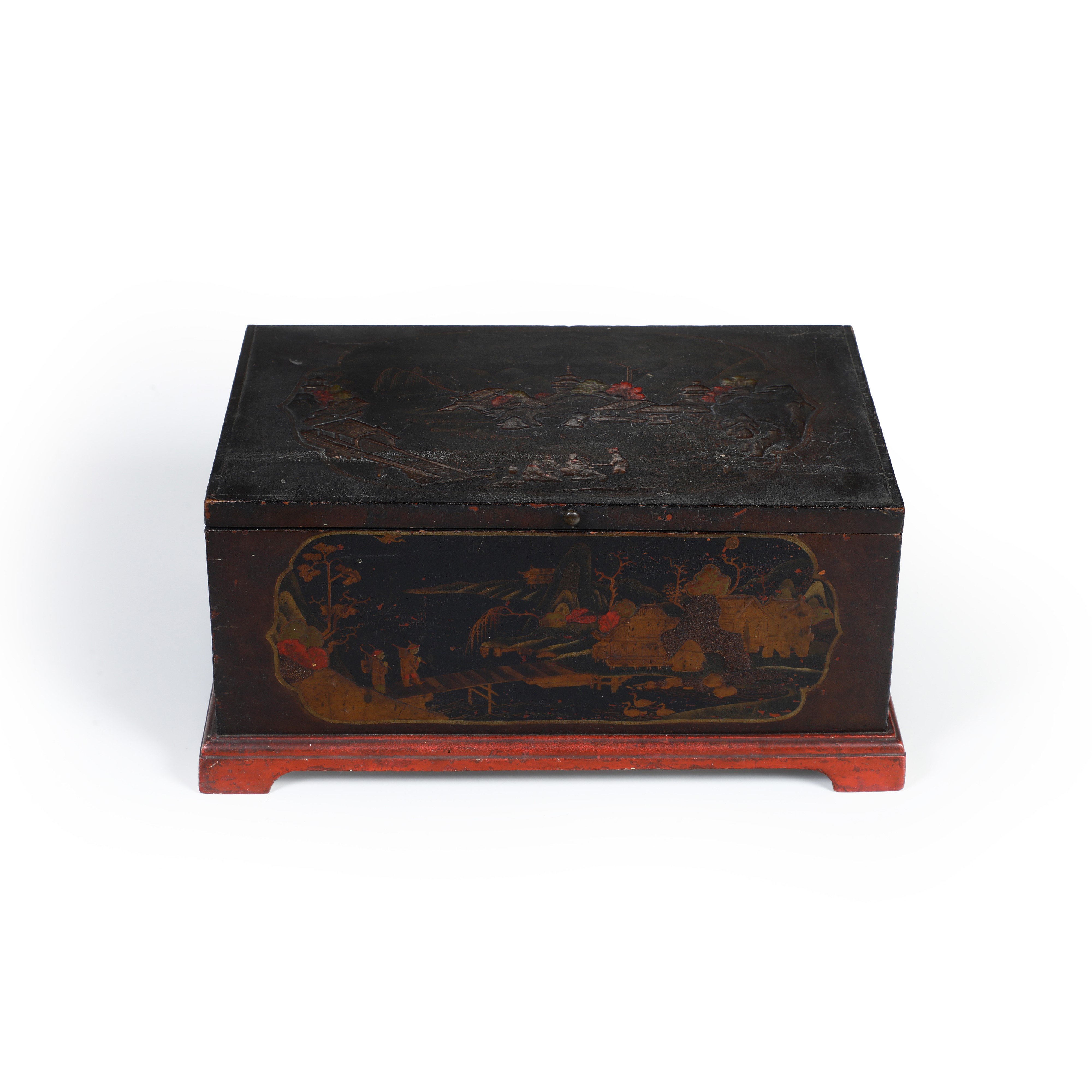 Decoro a cineserie con paesaggi su fondo nero entro riserve