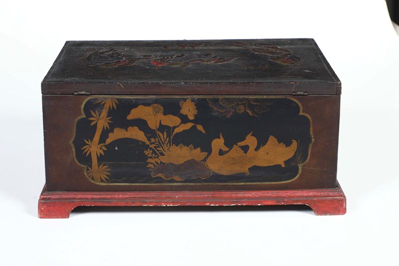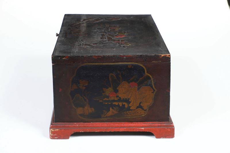 Bauletto in legno parzialmente laccato.