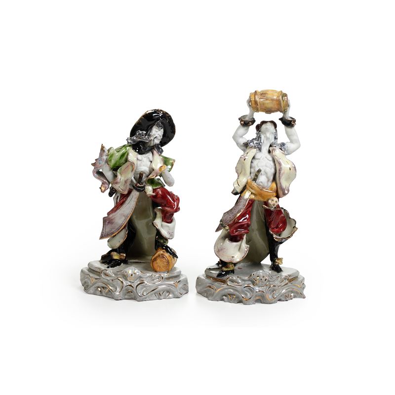 Terracotta invetriata. Marca: "Paduka. Florence Italy" in oro. Altezza massima cm 35,8. Conservazione: ottima; piccola mancanza dell'uncino di un pirata.