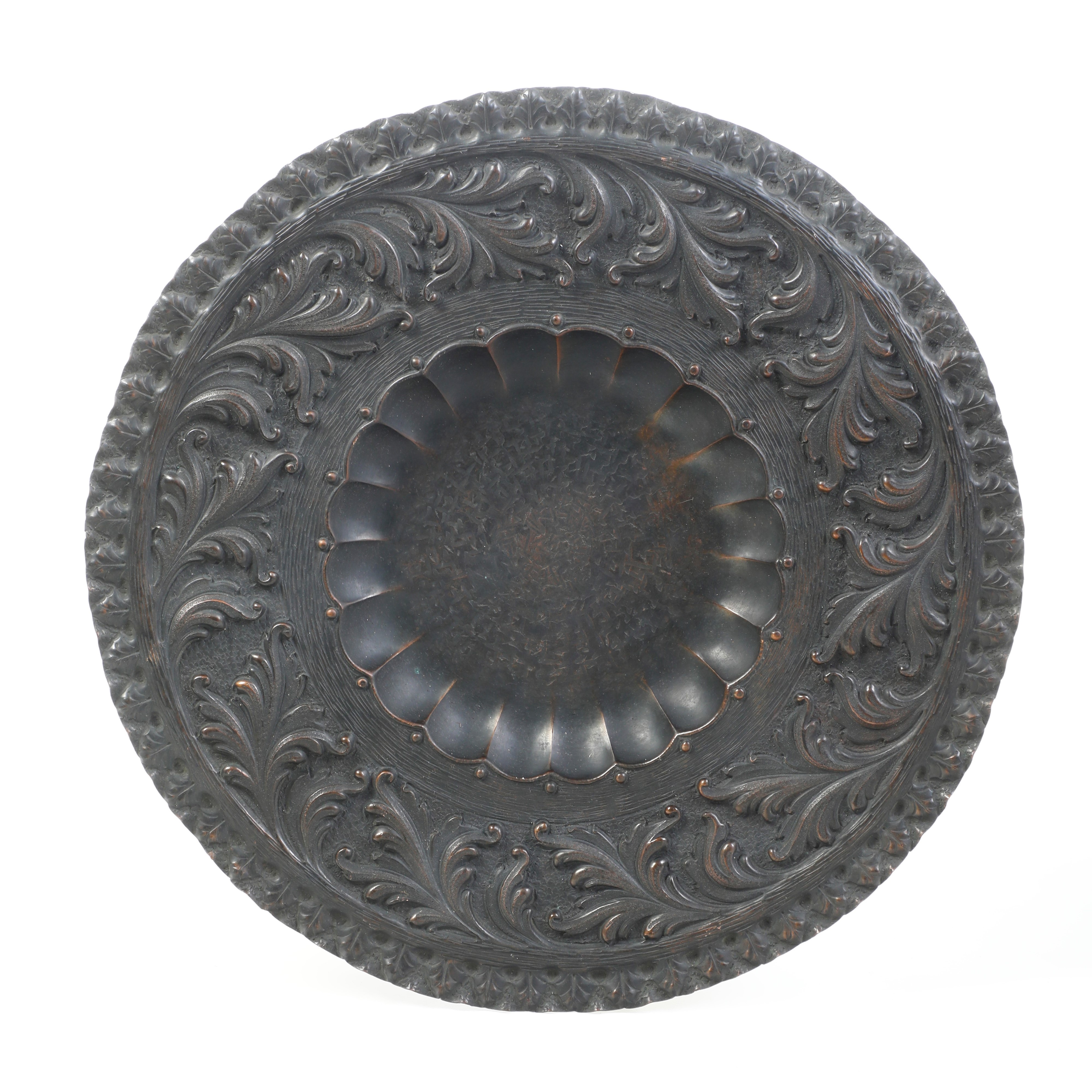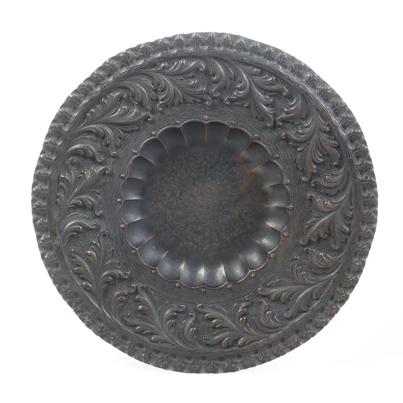 Grande piatto in rame lavorato a sbalzo