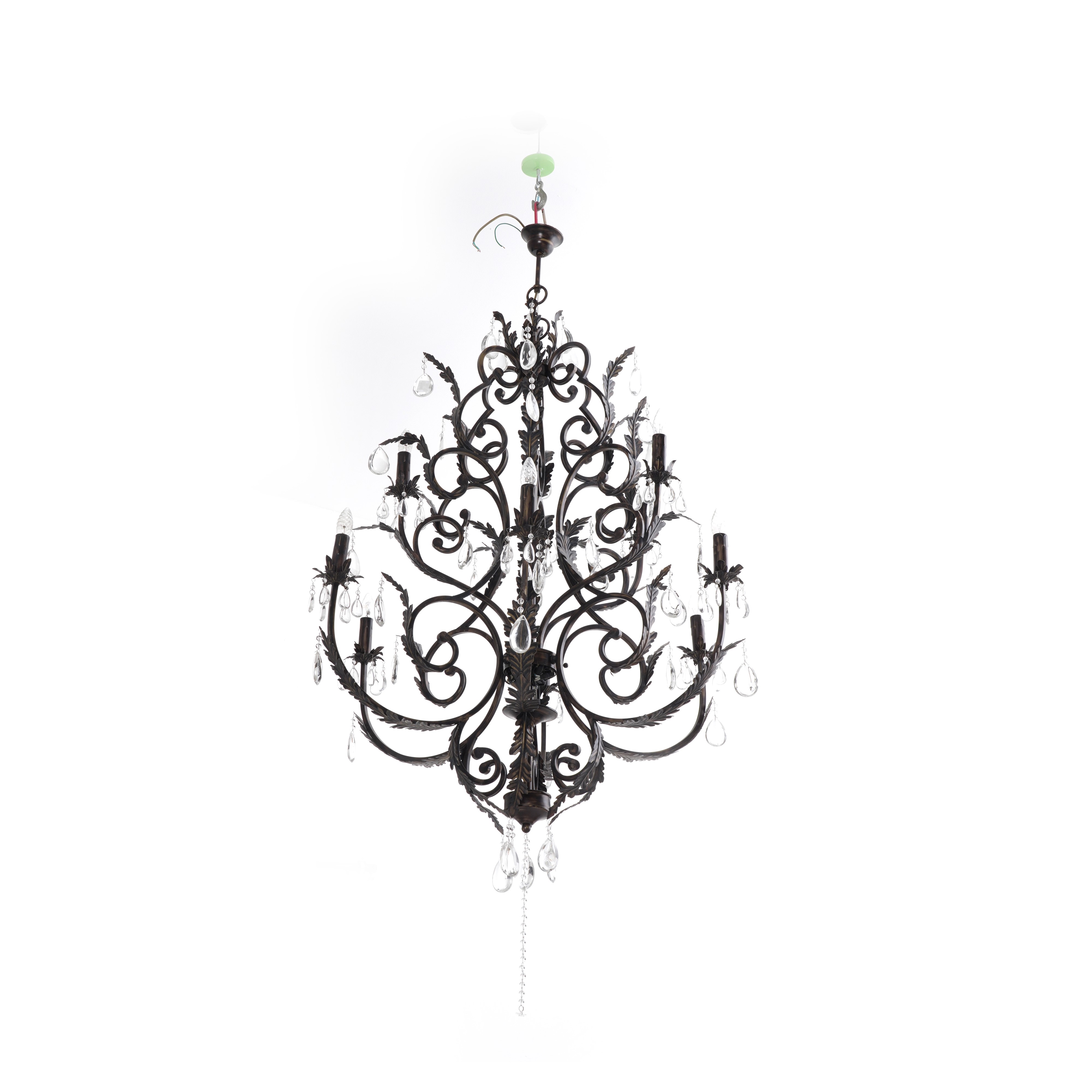 Lampadario ad otto luci in metallo e cristalli. XIX-XX secolo