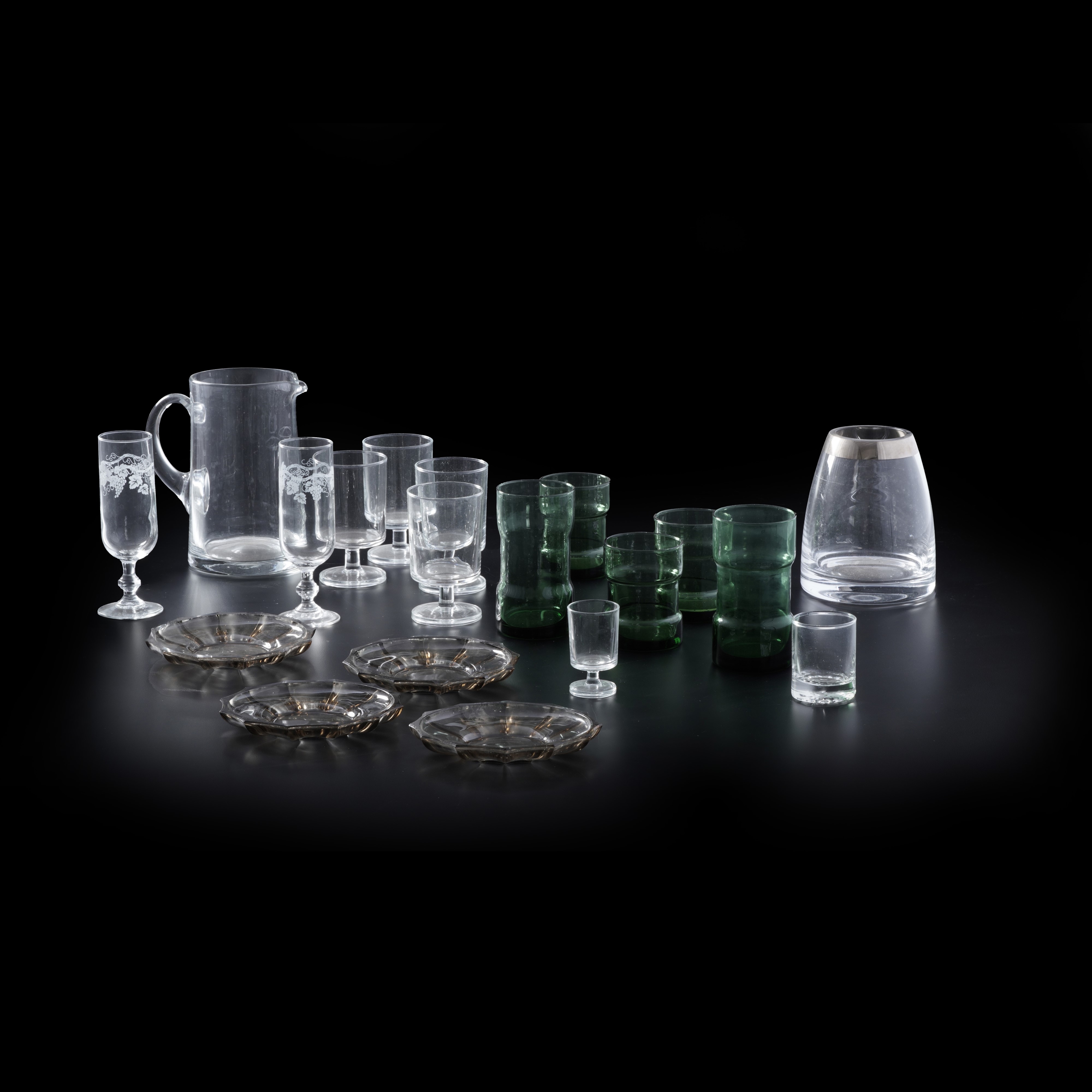 Per lo più bicchieri di varia foggia e decoro, piattini, una brocca e una glassette