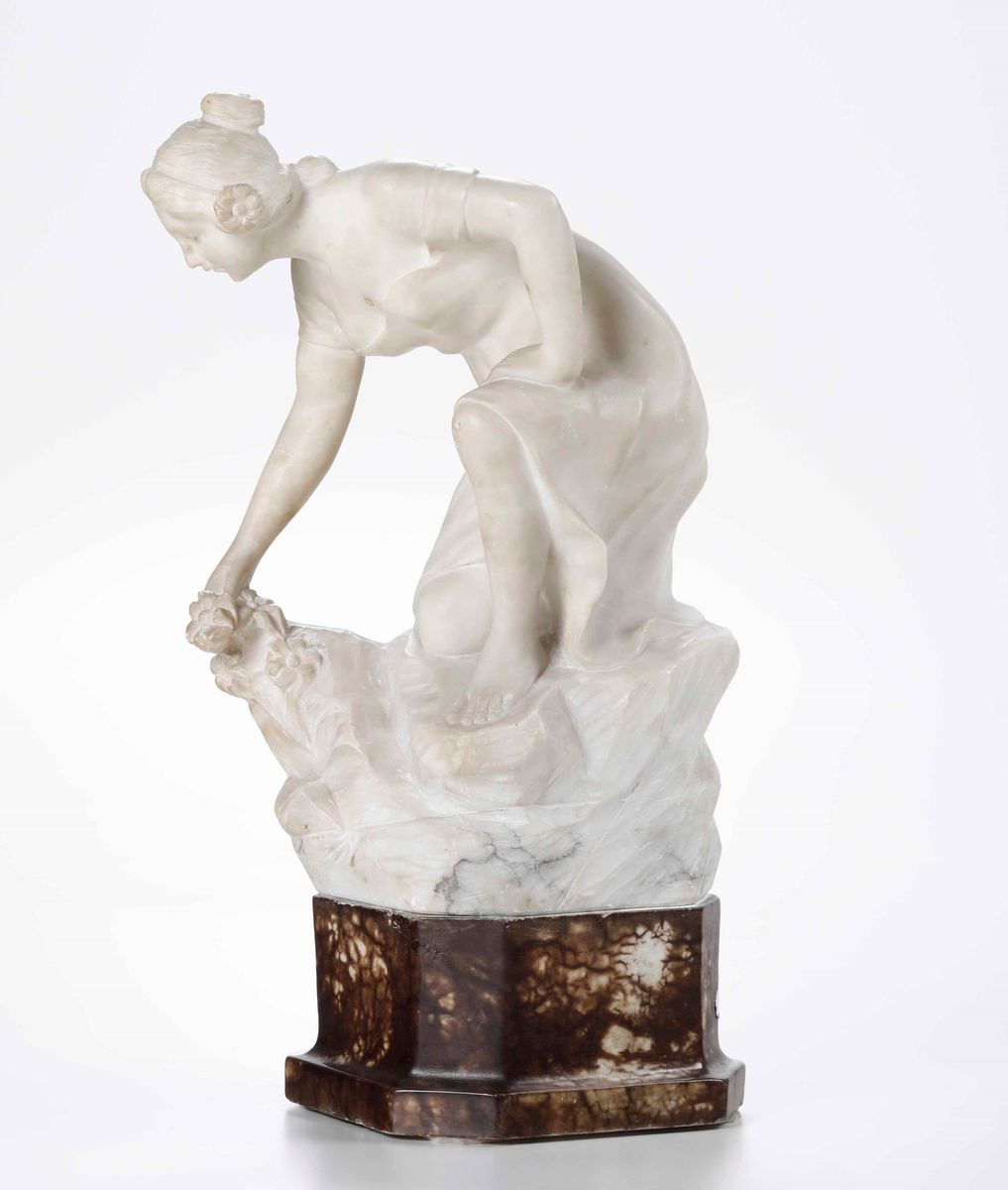 Scultore del XIX-XX secolo Giovinetta che coglie i fiori