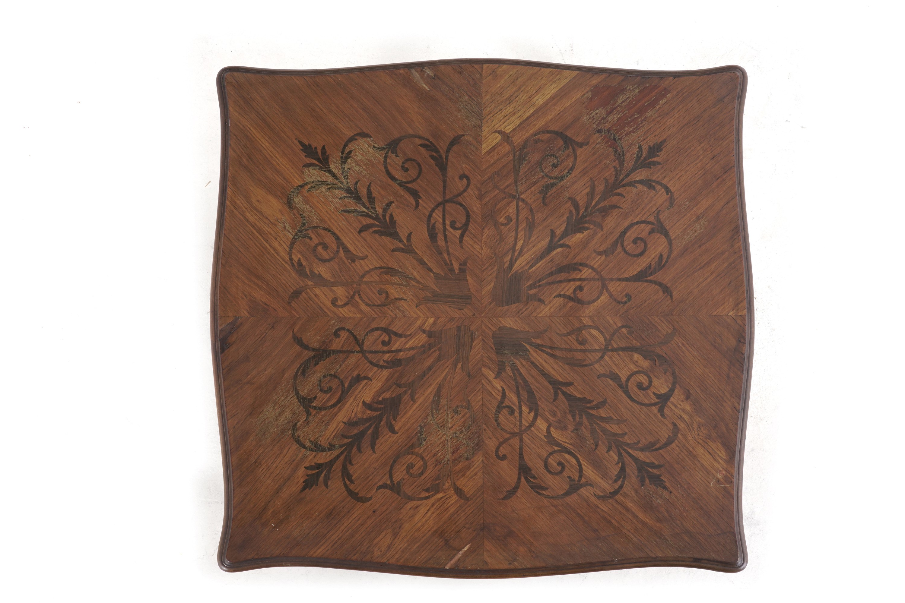 Gambe e bordo mossi, piano decorato con motivi vegetali