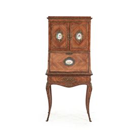 Trumeau lastronato decorato con placche in porcellana policroma, ghiere e profili in bronzo. Francia, XIX-XX secolo
