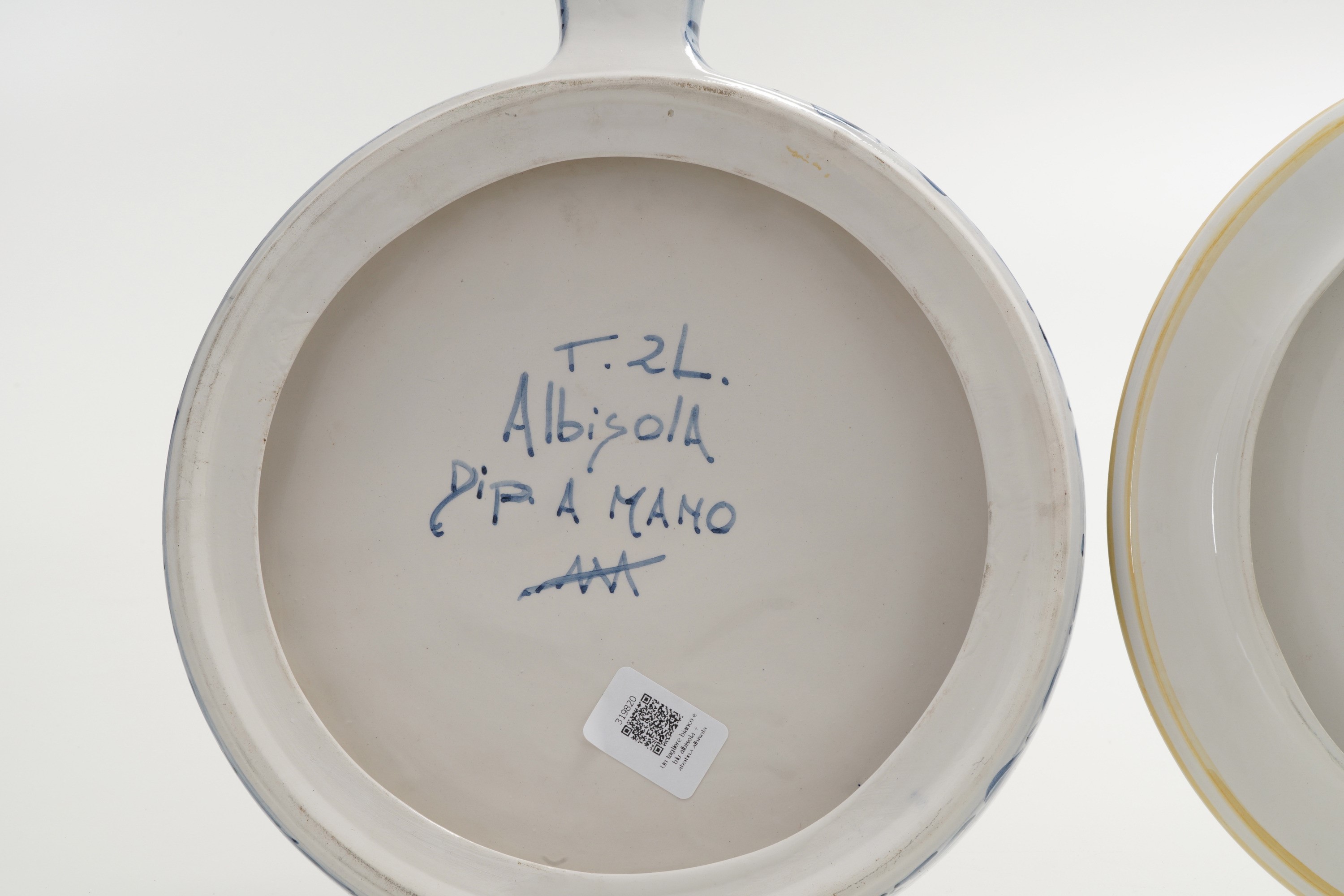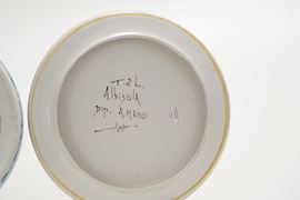Un tagliere bianco e blu Albisola e alzatina Albisola