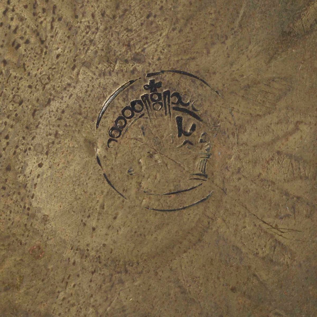 Un vassoio e due piatti in ottone sbalzato e cesellato. Arte del vicino oriente (Persia?) XIX secolo