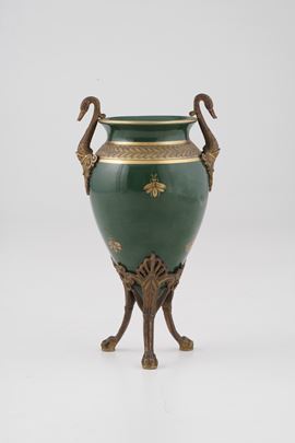 Vaso in ceramica verde con disegni dorati. Francia fine XIX secolo