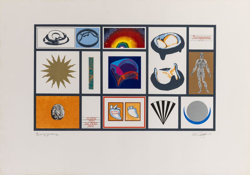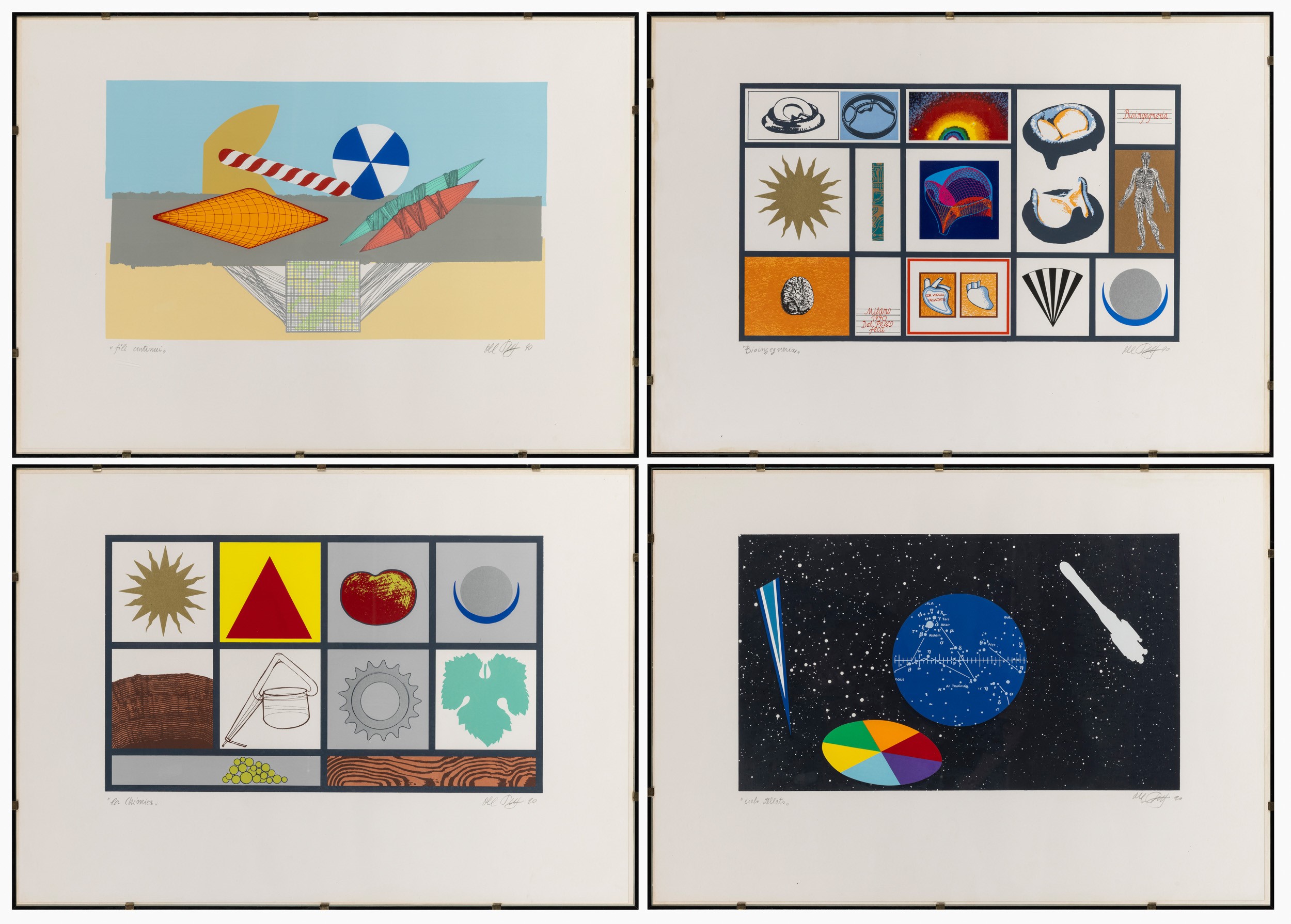 ciascuna grafica è firmata e intitolata