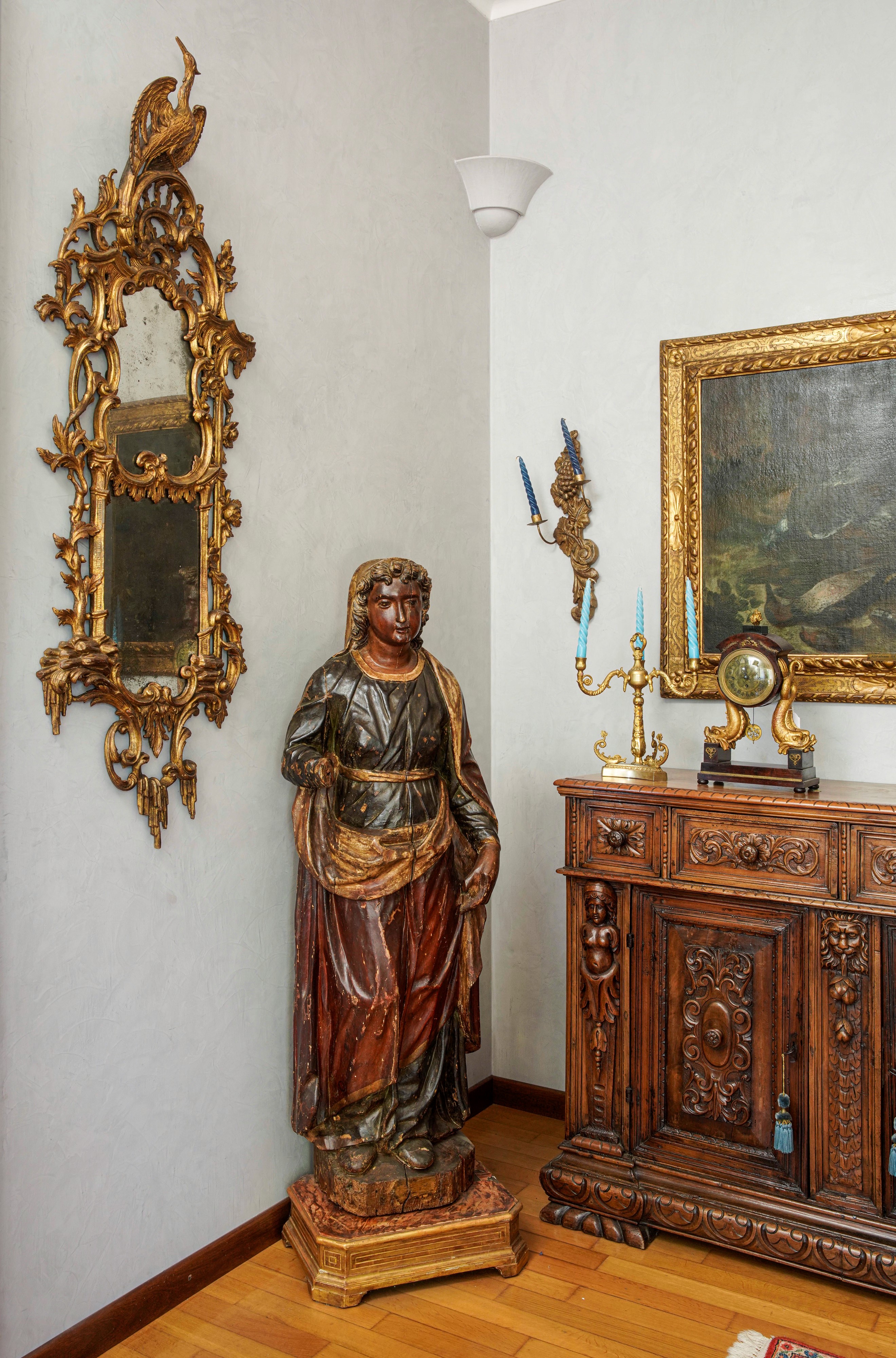 Legno policromo e dorato, su base lignea non pertinente dipinta a finto marmo (mancanze)