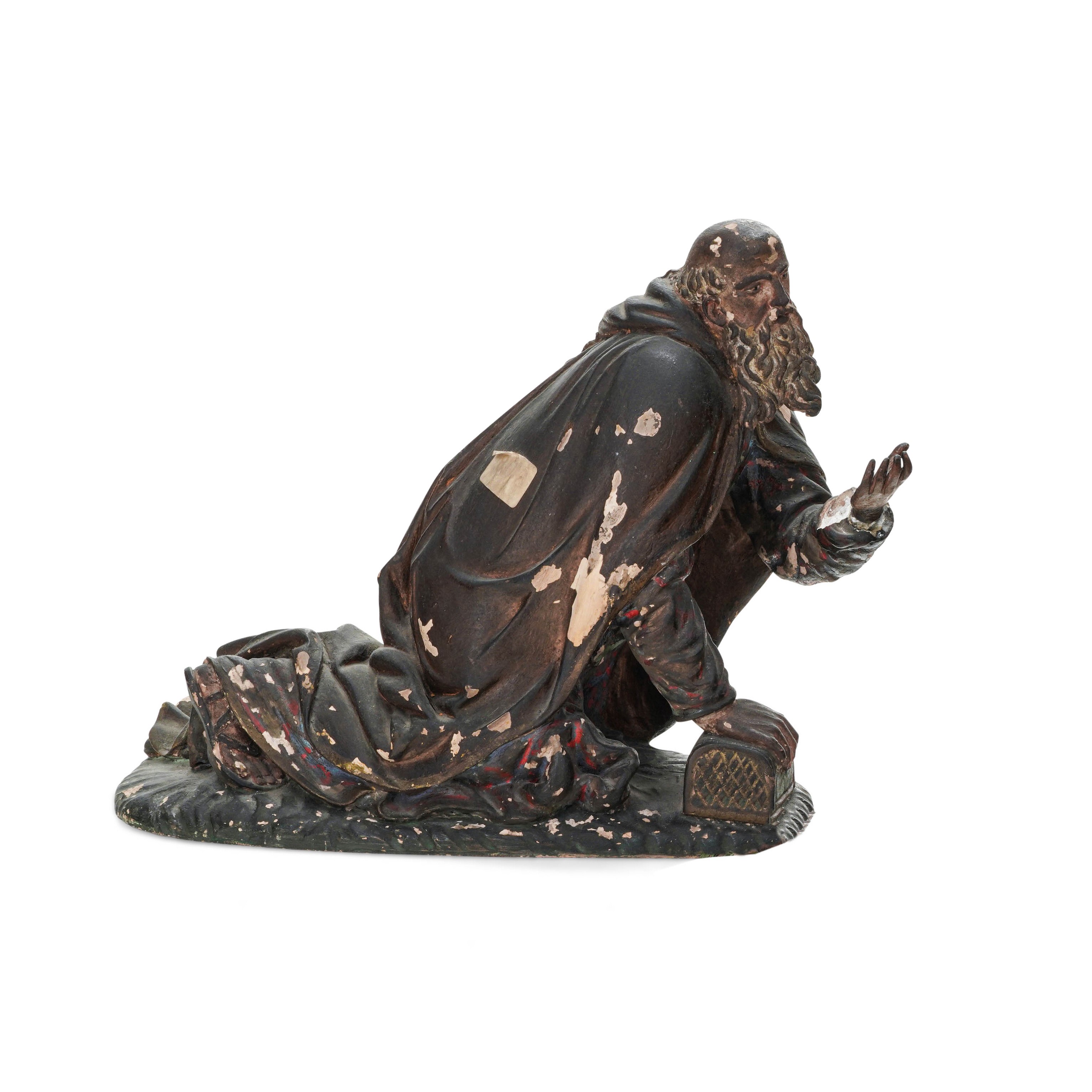 del lotto fa parte un gruppo in terracotta con frate su asino e contadino, Italia meridionale fine XX secolo