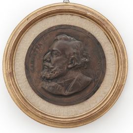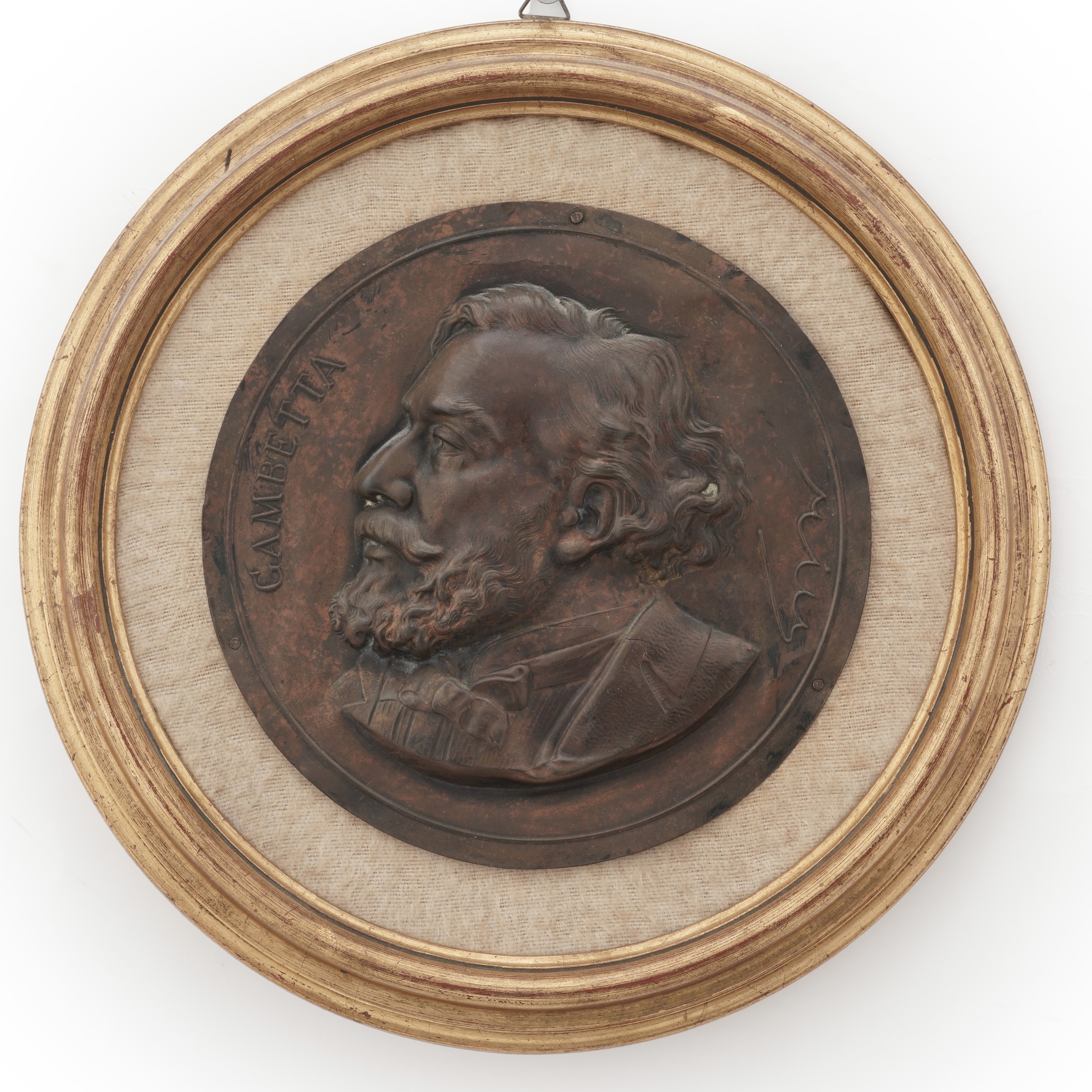 Ritratto di profilo di Léon Gambetta. Firma a lato RIU. XIX secolo