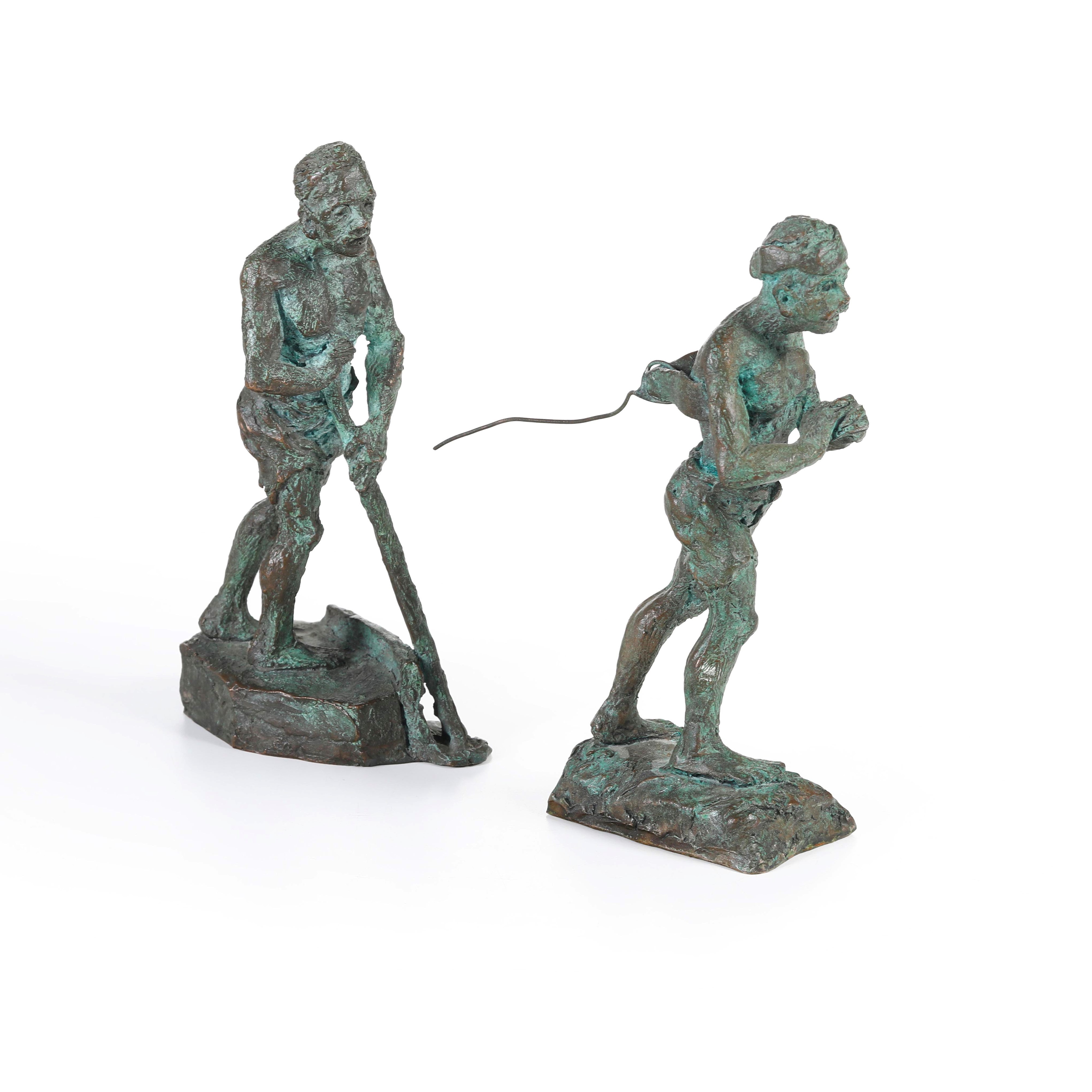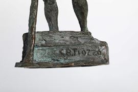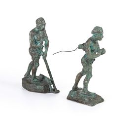 Coppia di figure in bronzo, di cui una firmata Tiozzo