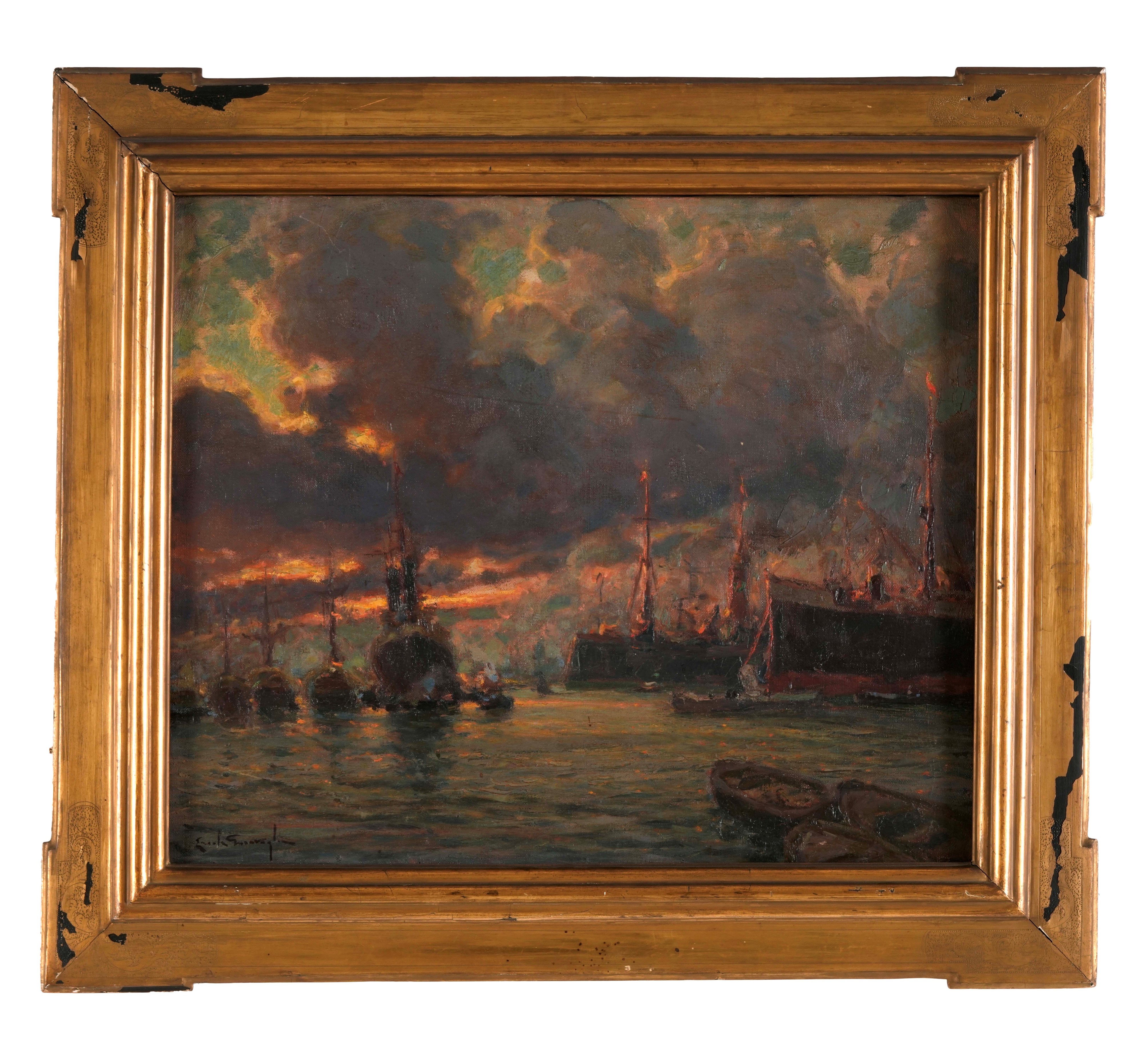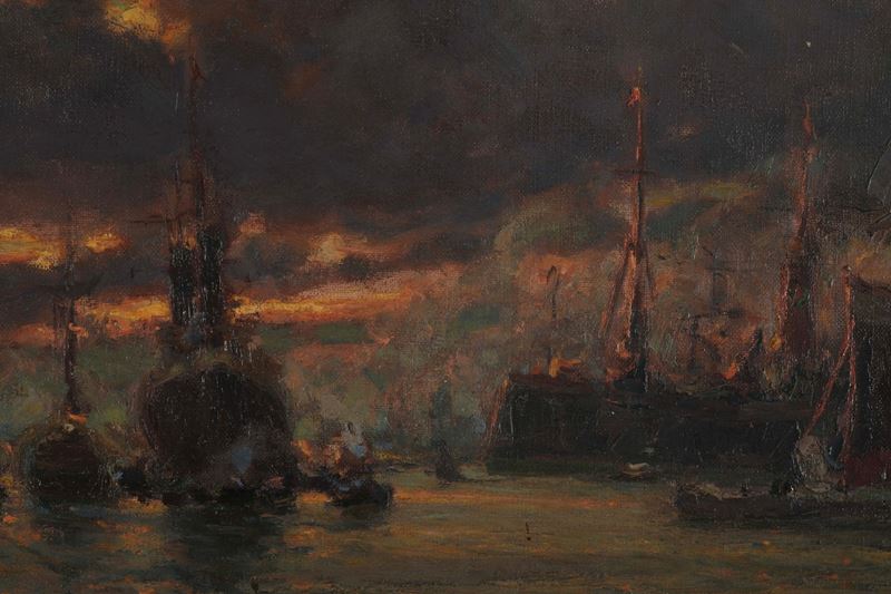 Ercole Garavaglia (XIX-XX Secolo) Veduta di porto