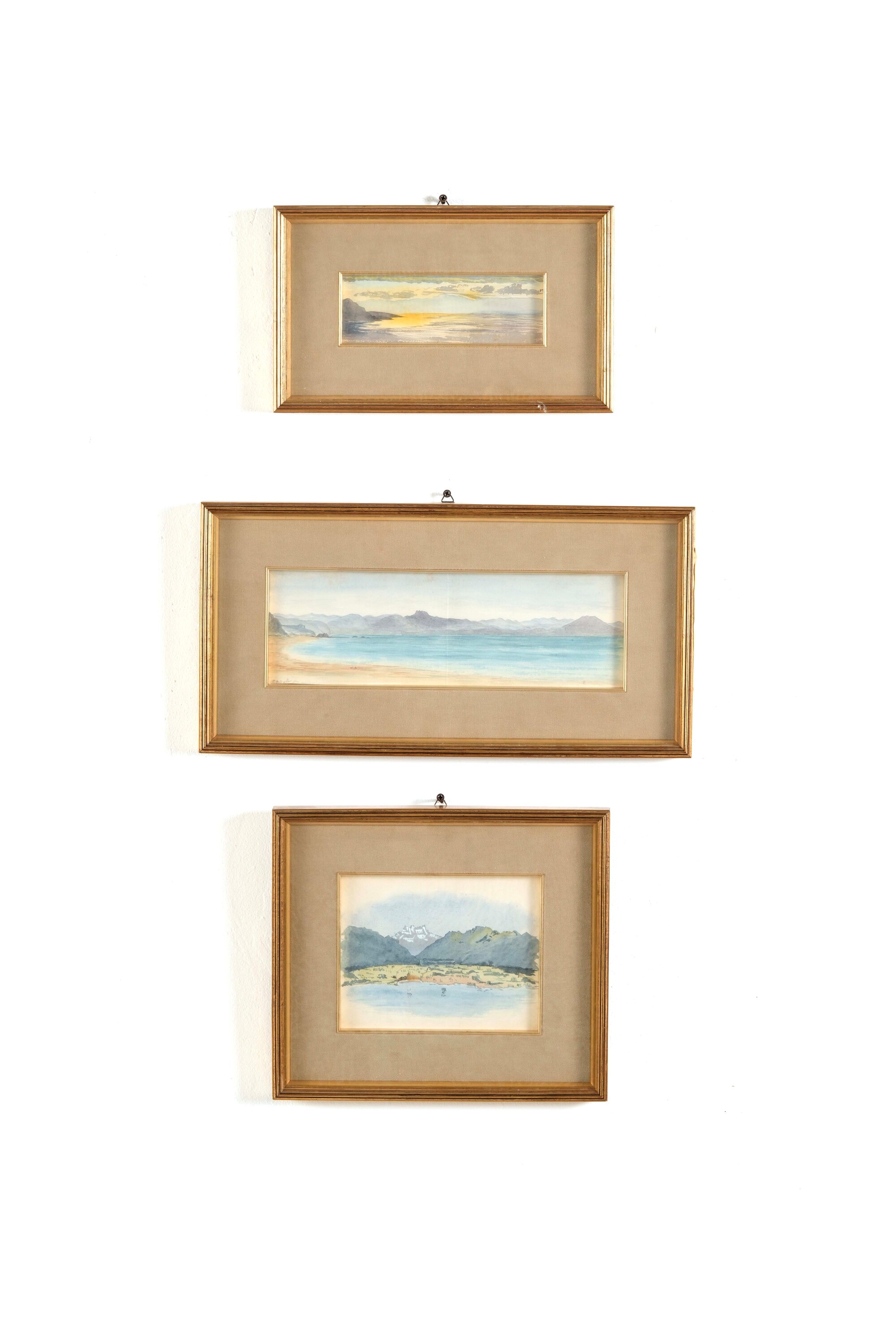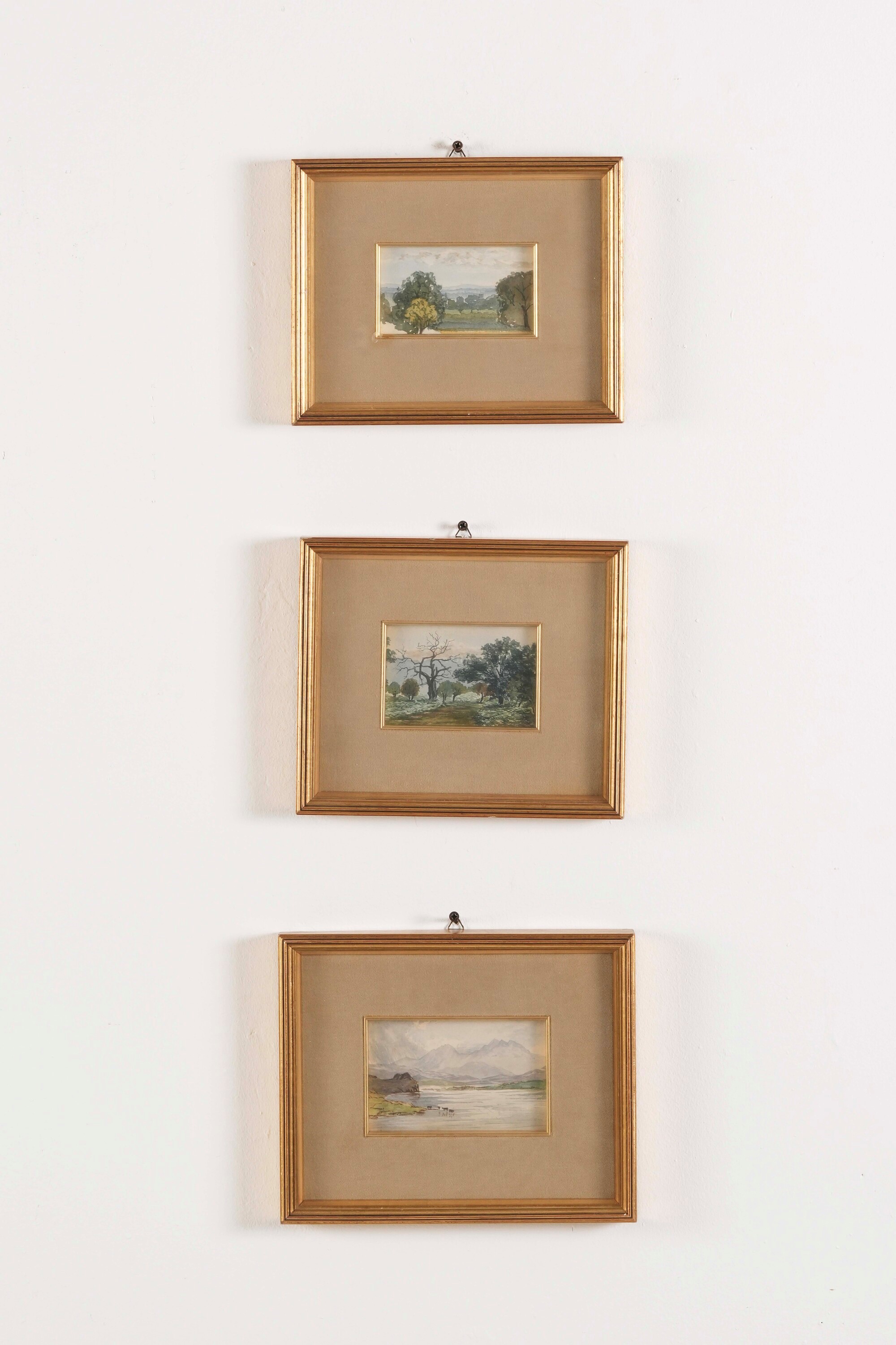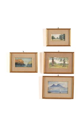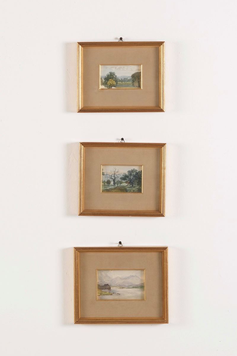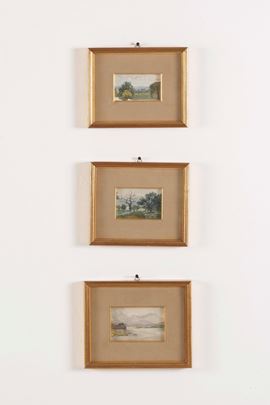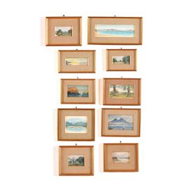 Gruppo di dieci acquerelli raffiguranti paesaggi. XX secolo