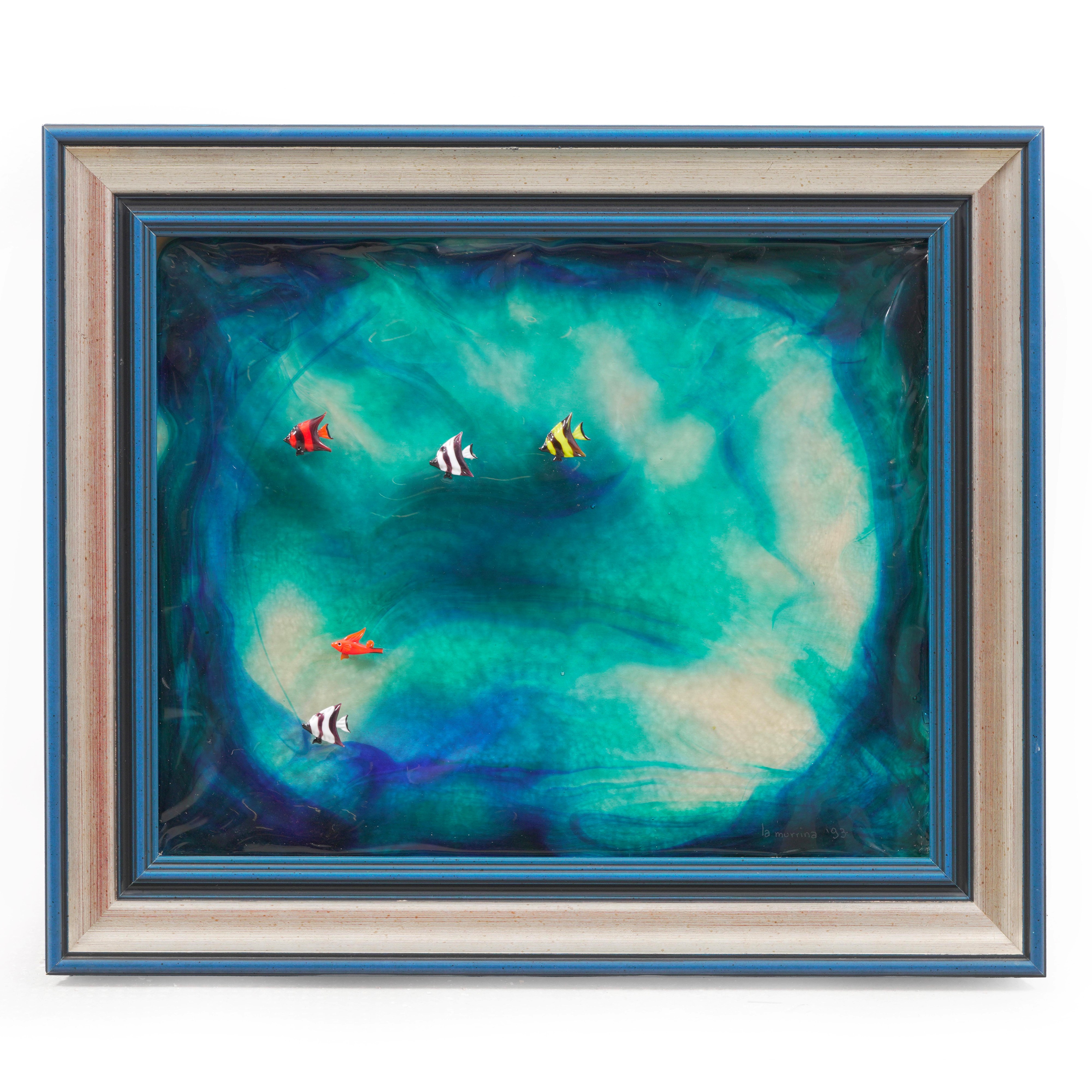 Vetro inciso in cornice raffigurante oceano.