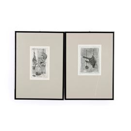 Coppia di litografie. Firma su lastra, firma e tiratura a matita in basso fuori lastra. Entro cornici.