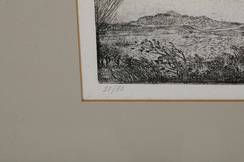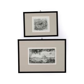 Coppia di litografie. Firma e tiratura a matita in basso fuori lastra. Entro cornici.