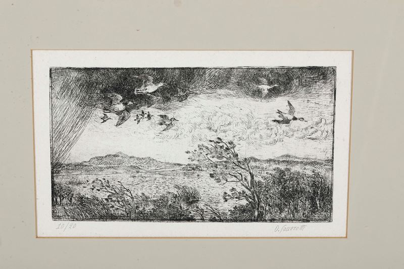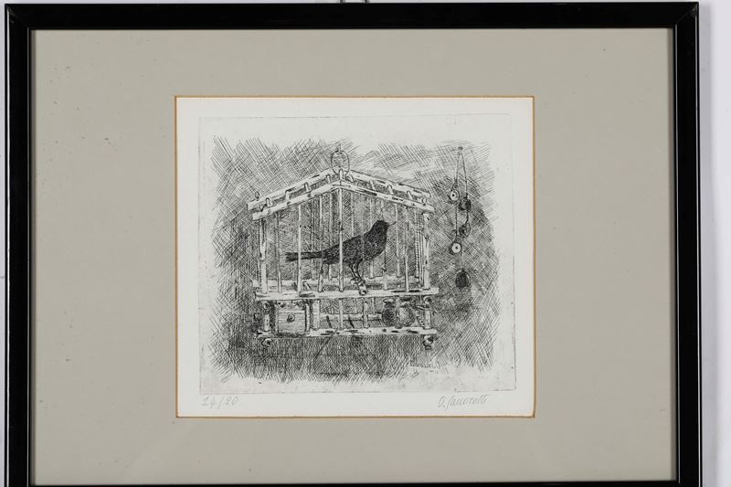 Saccorotti, Oscar (1898-1986) Uccellino in gabbia / Paesaggio