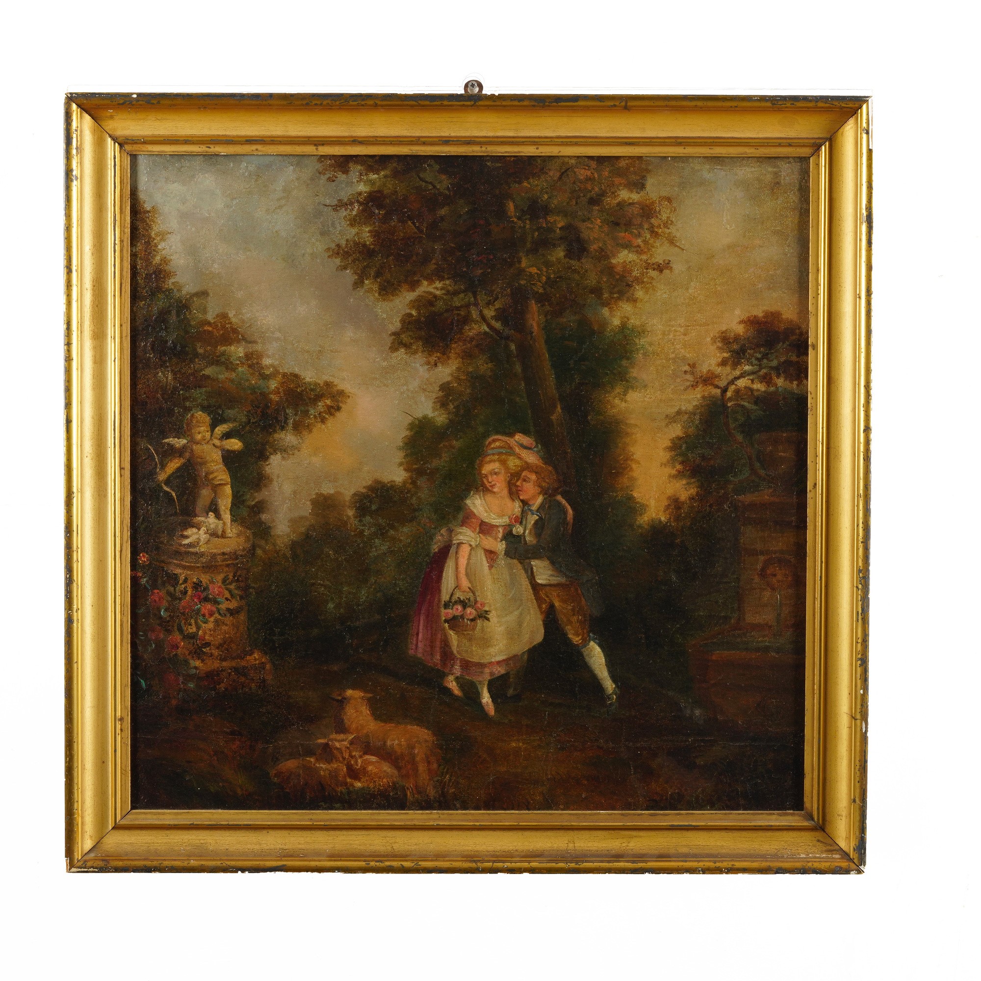 Scuola francese del XVIII-XIX secolo Scena galante in un giardino