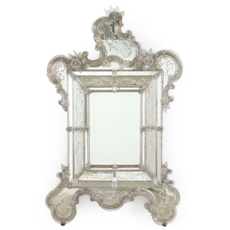 Specchiera a più riserve in vetro di Murano in stile veneziano. XX secolo