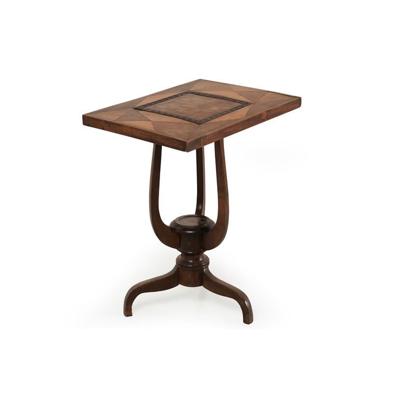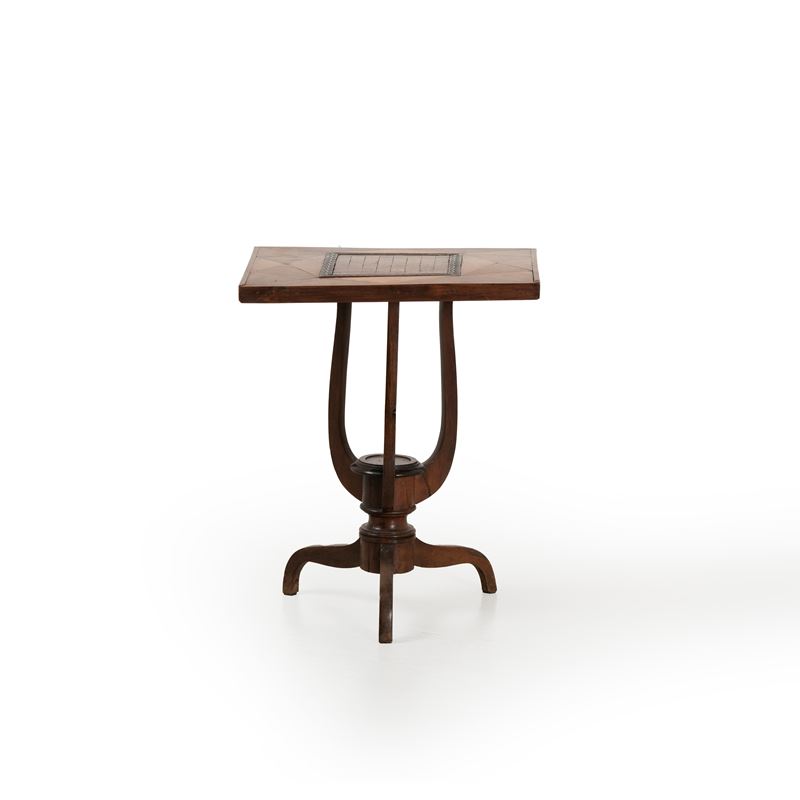 Tavolino da gioco con piano intarsiato. XIX secolo