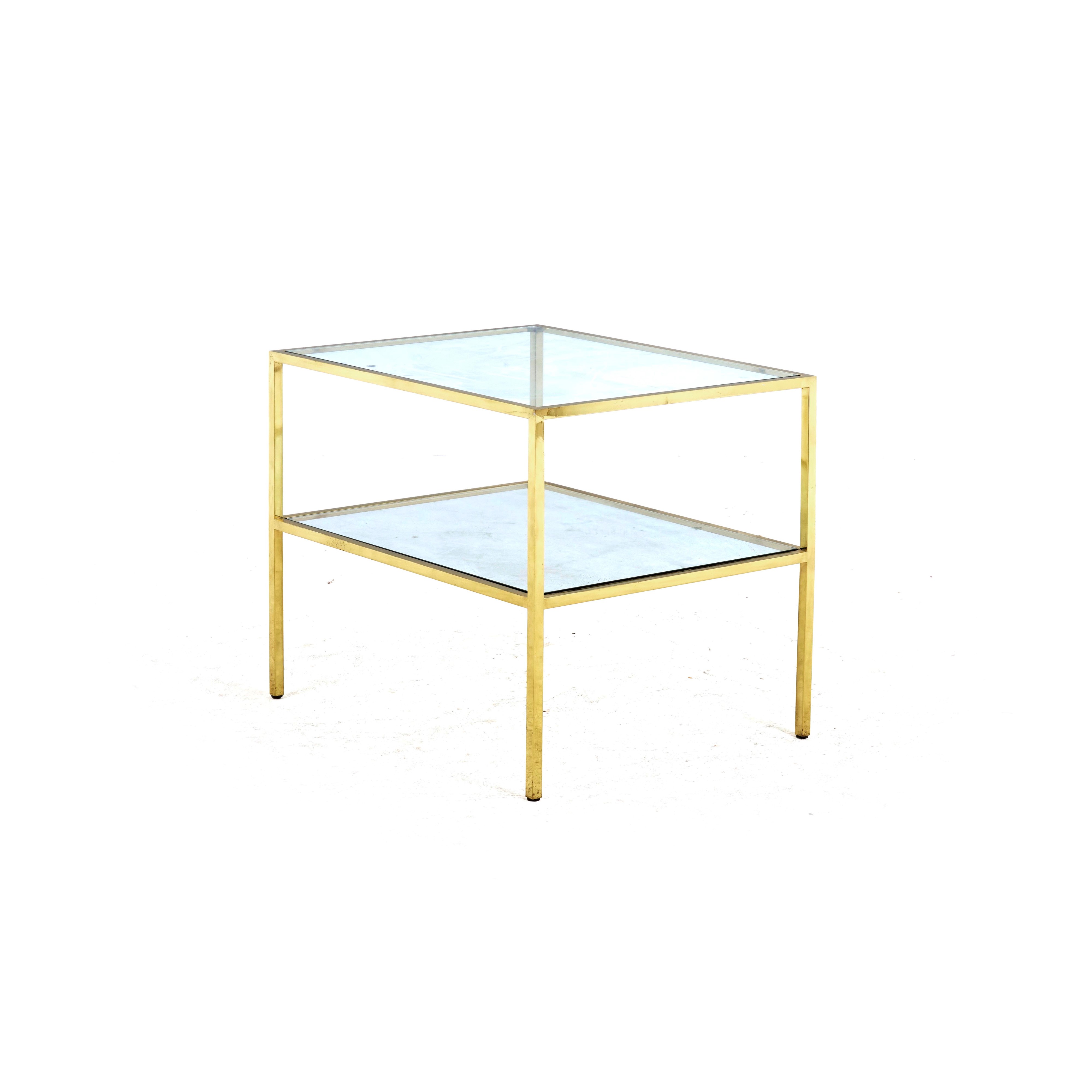 Tavolino rettangolare in ottone a due piani in vetro. XX secolo