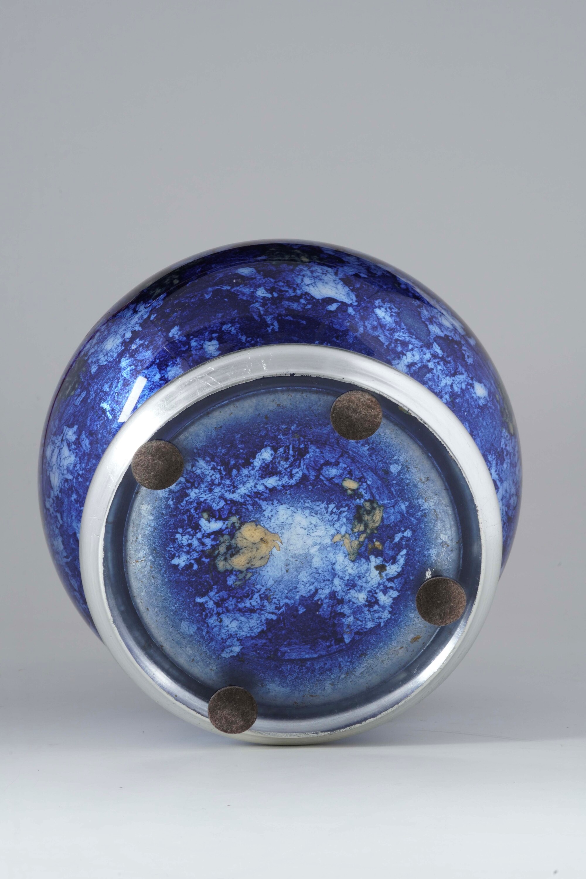 Piriforme, base con bordo argentato, marmorizzato nei toni del blu con lumeggiature dorate