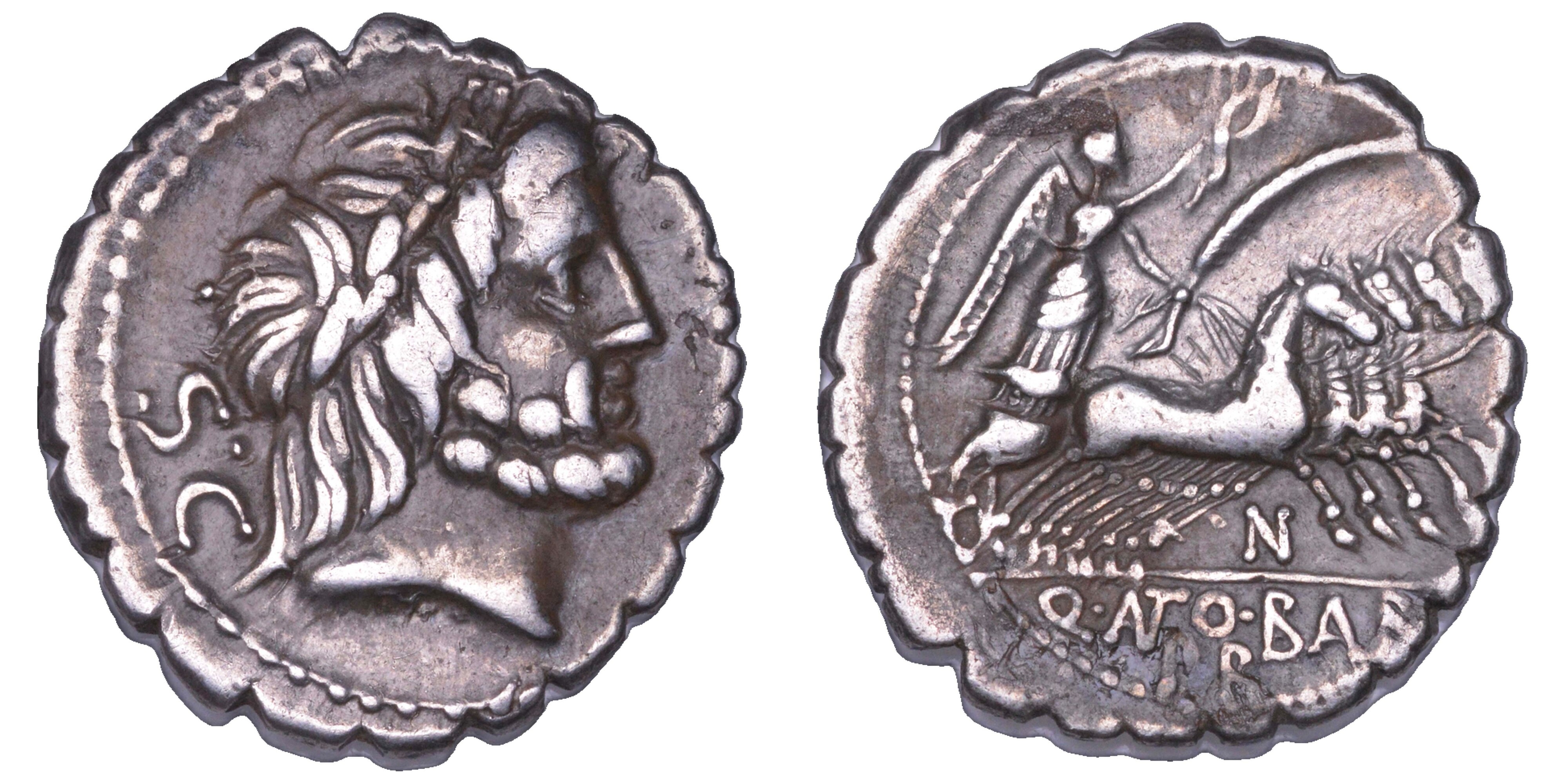 ANTONIA. Q. Antonius Balbus, 83-82 a.C. Denario serrato.
