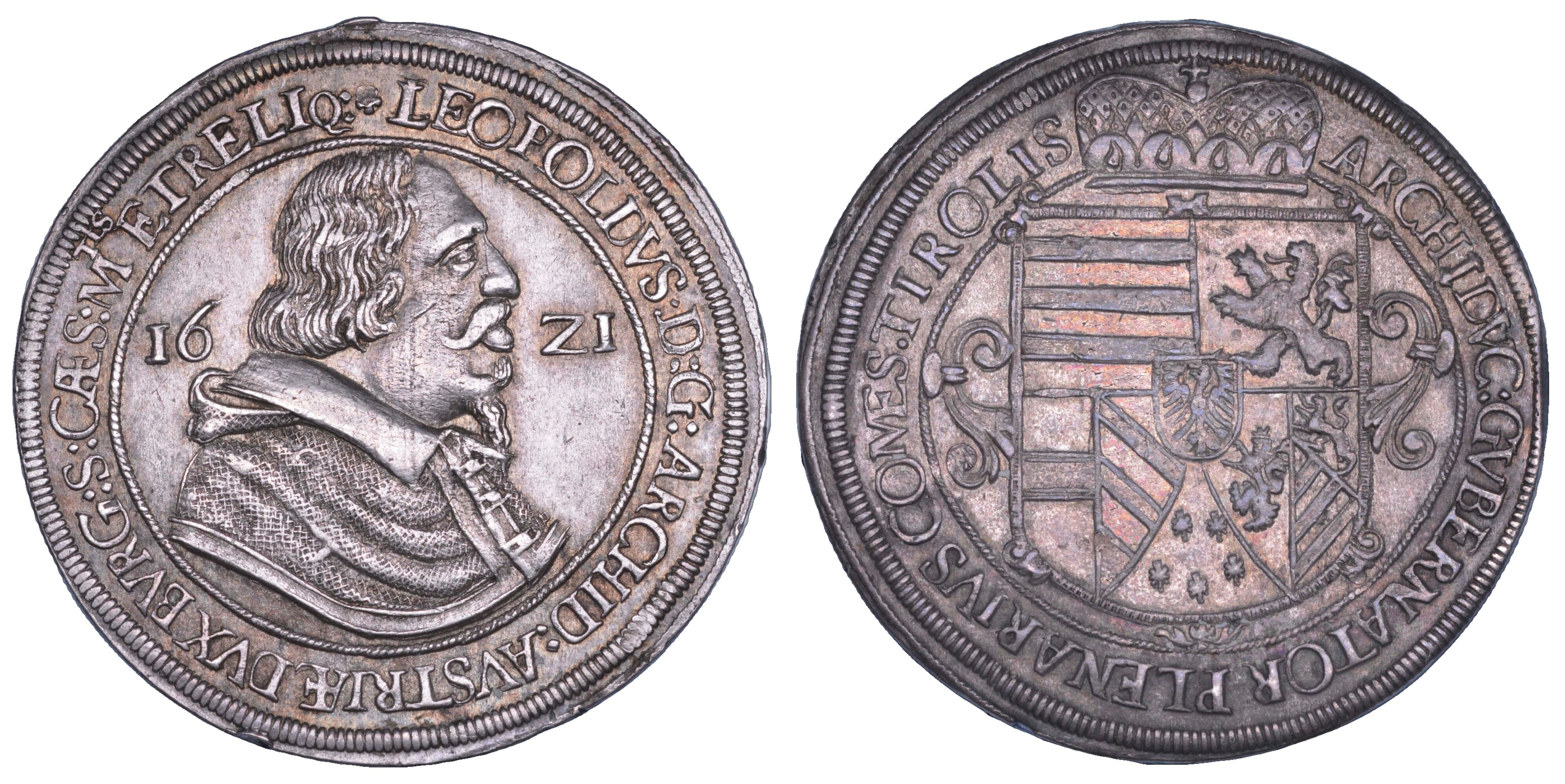 AUSTRIA. LEOPOLD V, 1619-1632. Taler 1621. Hall.