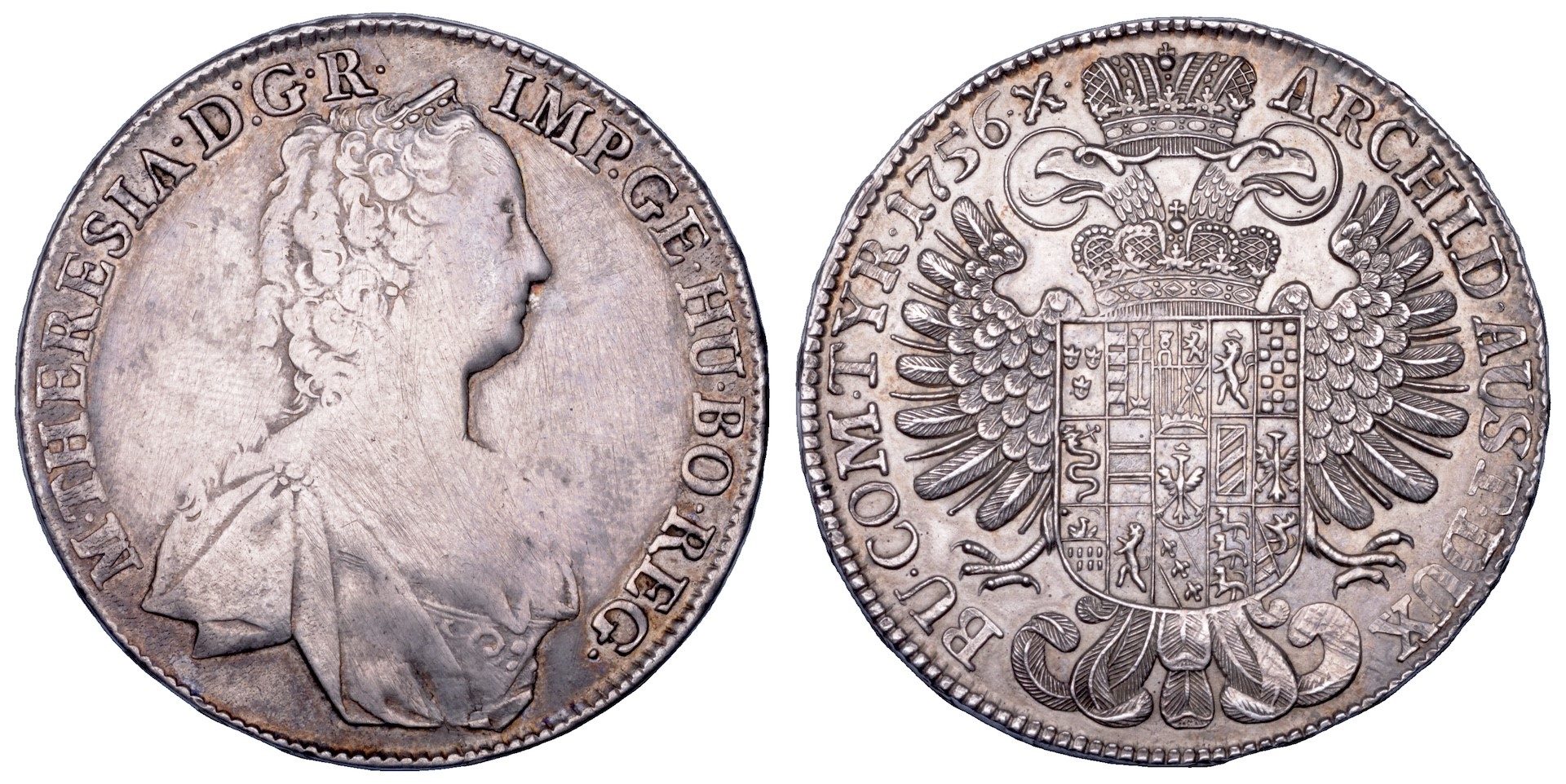 AUSTRIA. MARIA THERESIA, 1740-1780. Thaler 1756. Hall.